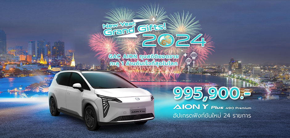 AION ปรับราคาจำหน่าย AION Y Plus 490 Premium กว่า 100,000 บาท ราคาเดิม 1,099,900 ลดเหลือเพียง 995,900 บาท เป็นของขวัญปีใหม่ตั้งแต่วันที่ 1 มกราคม 2567 ขณะที่ในตลาดโลกทำลายสถิติผลิตรถอีวีครบ 1 ล้านคันเร็วที่สุด