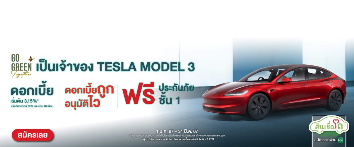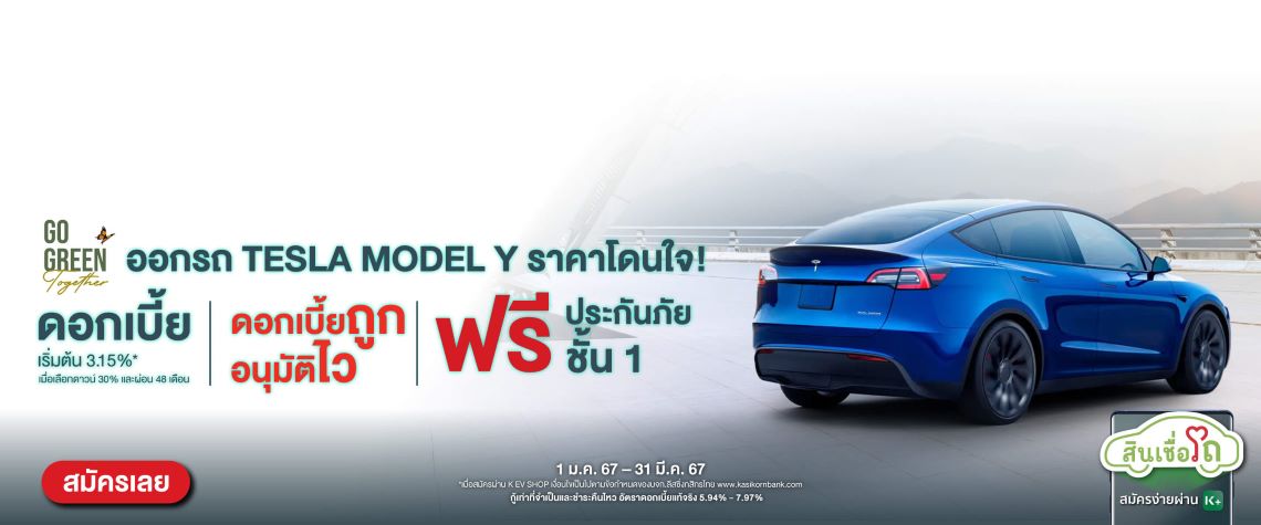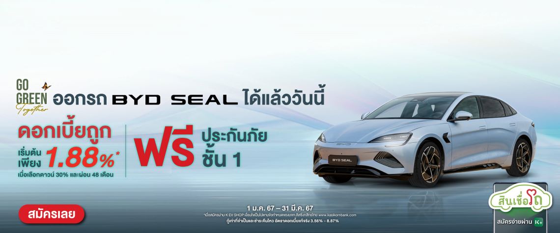 สนใจสินเชื่อรถใหม่ผ่านช่องทาง K EV Shop บริษัท ลีสซิ่งกสิกรไทย เช็คข้อมูลเพิ่มเติมได้จาก www.kasikornbank.com