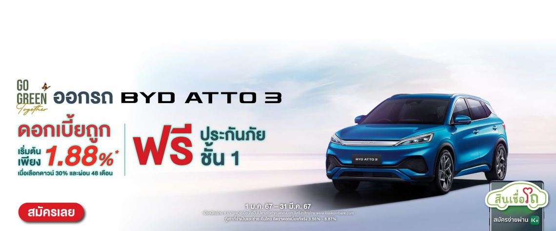 ดอกเบี้ยเริ่มต้น 1.88%* ฟรีประกันภัยชั้น 1 พร้อม พ.ร.บ. นาน 2 ปี