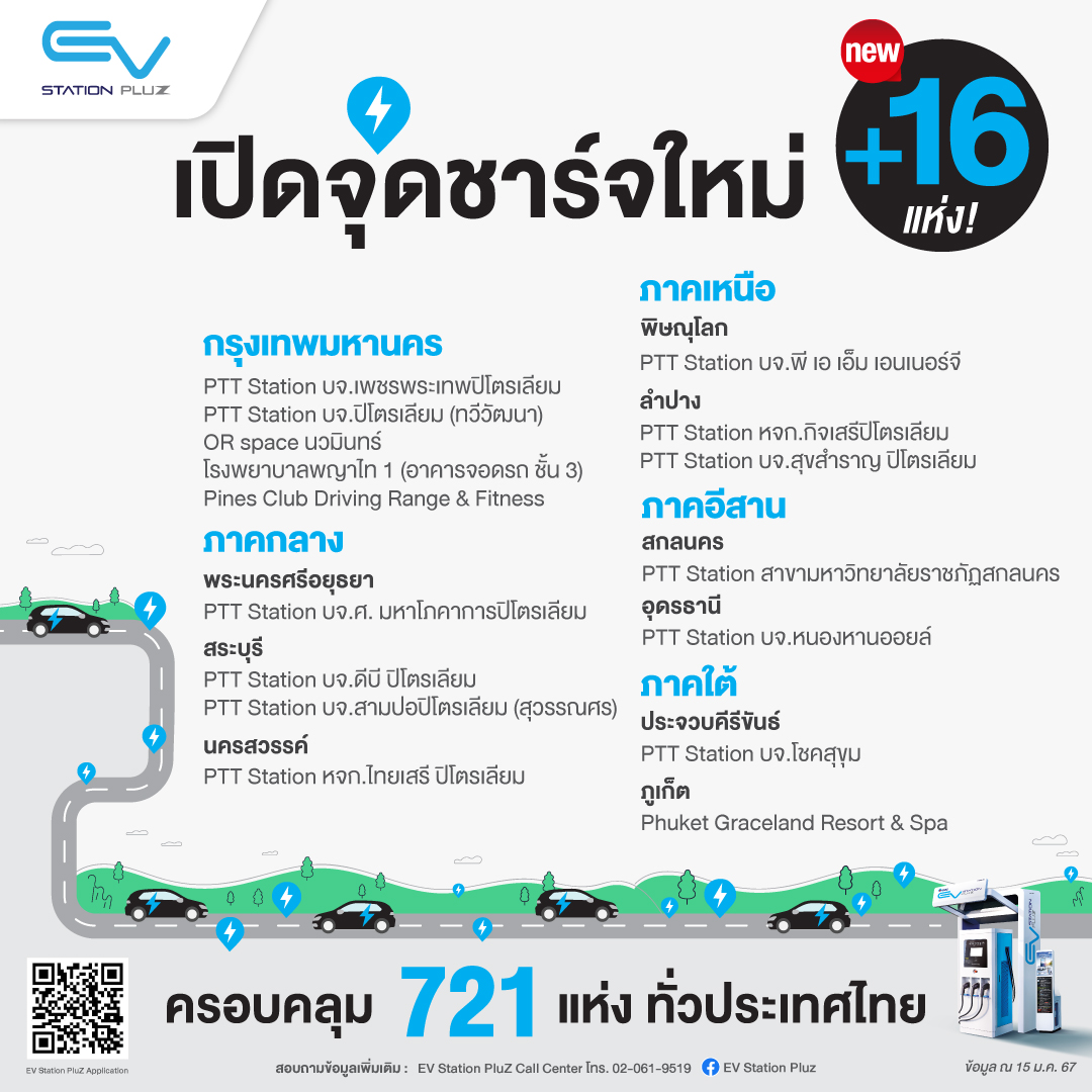 EV Station PluZ ปักหมุดสถานีชาร์จไฟฟ้าแห่งที่ 721 เป็นที่เรียบร้อยตั้งแต่กลางเดือนมกราคมที่ผ่านมา ล่าสุดอัพเดทพิกัดของ 16 สถานีชาร์จใหม่ ครอบคลุมทั้งกรุงเทพ ภาคกลาง ภาคเหนือ ภาคอีสาน และภาคใต้ ตามไปดูว่ามีที่ไหนบ้าง