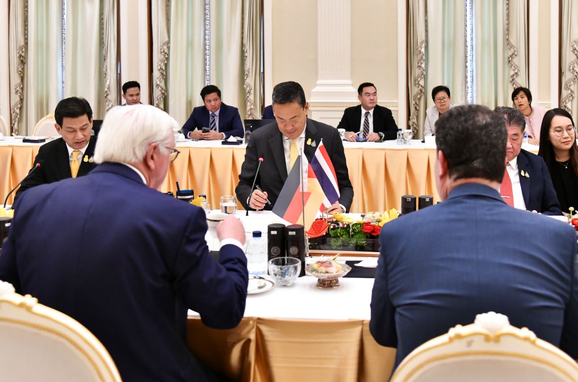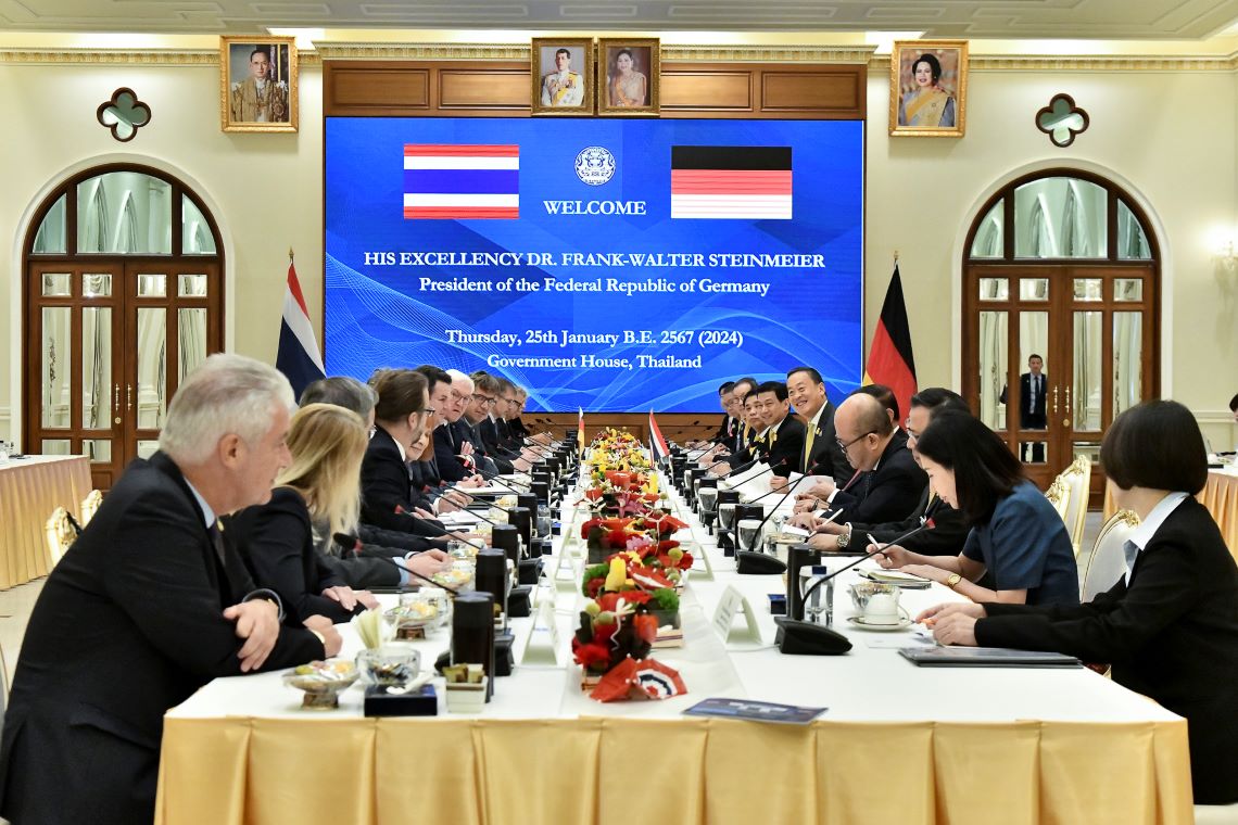นายเศรษฐา ทวีสิน นายกรัฐมนตรีและรัฐมนตรีว่าการกระทรวงการคลัง หารือเต็มคณะ ร่วมกับ ดร.ฟรังค์-วัลเทอร์ ชไตน์ไมเออร์ (H.E. Dr. Frank-Walter Steinmeier) ประธานาธิบดีแห่งสหพันธ์สาธารณรัฐเยอรมนี นาย Michael Kellner รัฐมนตรีช่วยว่าการกระทรวงเศรษฐกิจและการปฏิบัติการด้านสภาพภูมิอากาศ สหพันธ์สาธารณรัฐเยอรมนี (BMWK) และคณะผู้แทนภาคเอกชนเยอรมนี เมื่อวันที่ 25 มกราคม 2567 ณ ตึกภักดีบดินทร์ ทำเนียบรัฐบาล