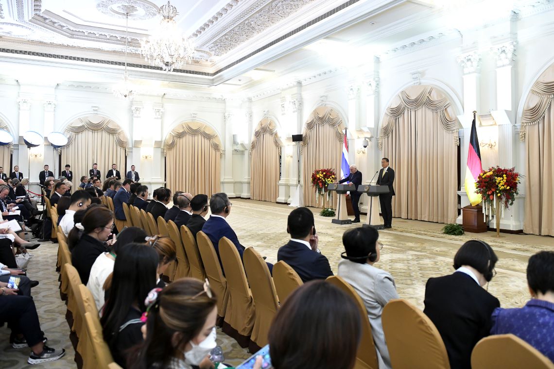 ประธานาธิบดีเยอรมนี กล่าวว่า เยอรมนีเชื่อมั่นในความสัมพันธ์ที่ใกล้ชิดและแข็งแกร่งระหว่างสองประเทศ ซึ่งไทยถือเป็นประเทศแรกที่มีทั้งความสัมพันธ์ทางการทูตและการค้ากับเยอรมนีอย่างยาวนานนับตั้งแต่ ปี ค.ศ. 1862 โดยเชื่อมั่นว่าไทยไม่ได้เป็นเพียงประเทศด้านการค้าการลงทุนเท่านั้น แต่เป็นพันธมิตรที่ดีสำหรับเยอรมนี ซึ่งเชื่อมั่นในการร่วมกันพัฒนาอนาคตที่สดใสร่วมกัน รวมถึงชื่นชมการมีเสถียรภาพทางการเมืองของไทย สะท้อนว่าไทยพร้อมเปิดกว้างสำหรับการทำธุรกิจ โดยเยอรมนีพร้อมที่จะยกระดับทางการค้าการลงทุนร่วมกัน