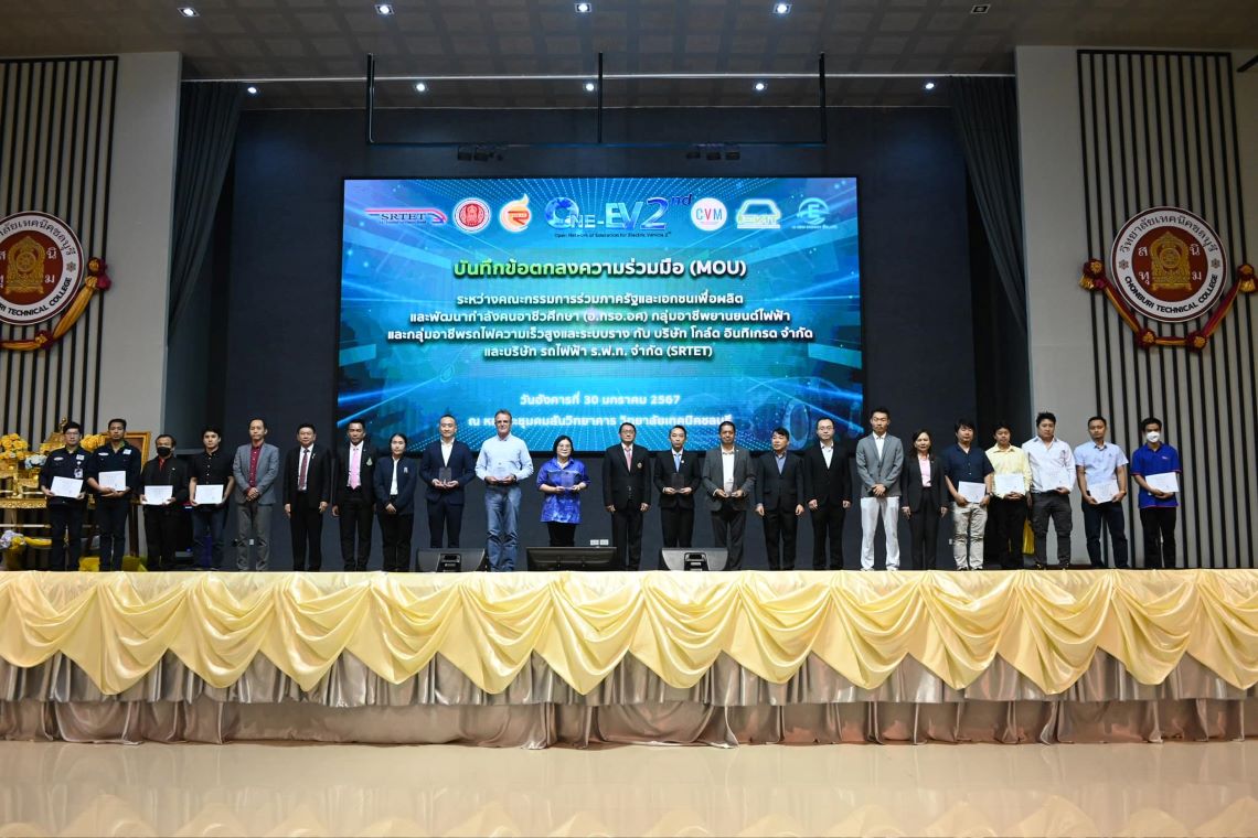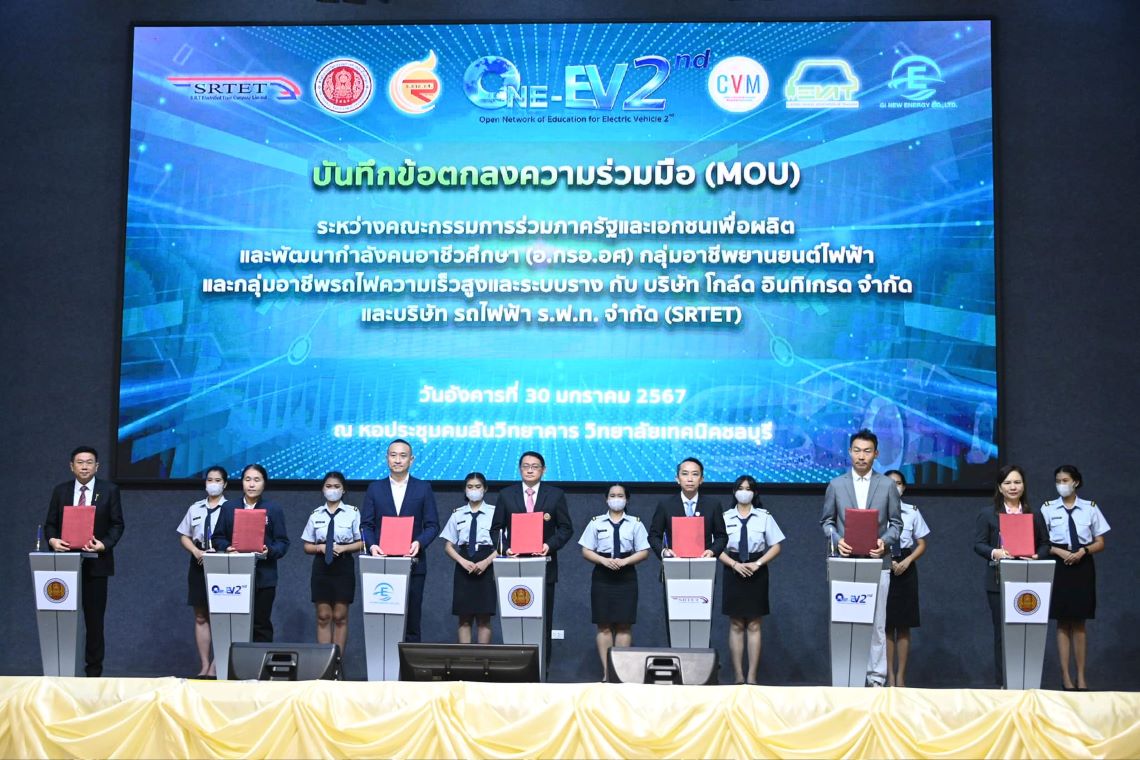 พิธีลงนามบันทึกข้อตกลงความร่วมมือ (MOU) ระหว่างสำนักงานคณะกรรมการการอาชีวศึกษา กับ บริษัท รถไฟฟ้า ร.ฟ.ท. จำกัด และ บริษัท โกลด์ อินทิเกรท จำกัด ตัวแทนจัดจำหน่ายรถยนต์ไฟฟ้า GAC AION ภายใต้การขับเคลื่อนของคณะอนุกรรมการร่วมภาครัฐและเอกชนเพื่อผลิตและพัฒนากำลังคนอาชีวศึกษา กลุ่มอาชีพยานยนต์ไฟฟ้า และกลุ่มอาชีพ รถไฟความเร็วสูงและระบบราง ผู้แทนที่ลงนามเอ็มโอยูครั้งนี้มี นายวิทวัต ปัญจมะวัต รองเลขาธิการคณะกรรมการการอาชีวศึกษานายปราโมทย์ ลิมปิผล รองกรรมการผู้อำนวยการใหญ่ กลุ่มสายงานปฏิบัติการเดินรถ บริษัท รถไฟฟ้า ร.ฟ.ท. จำกัด นายหวัง หย่ง เจีย ประธานกรรมการ บริษัท โกลด์ อินทิเกรท จำกัด