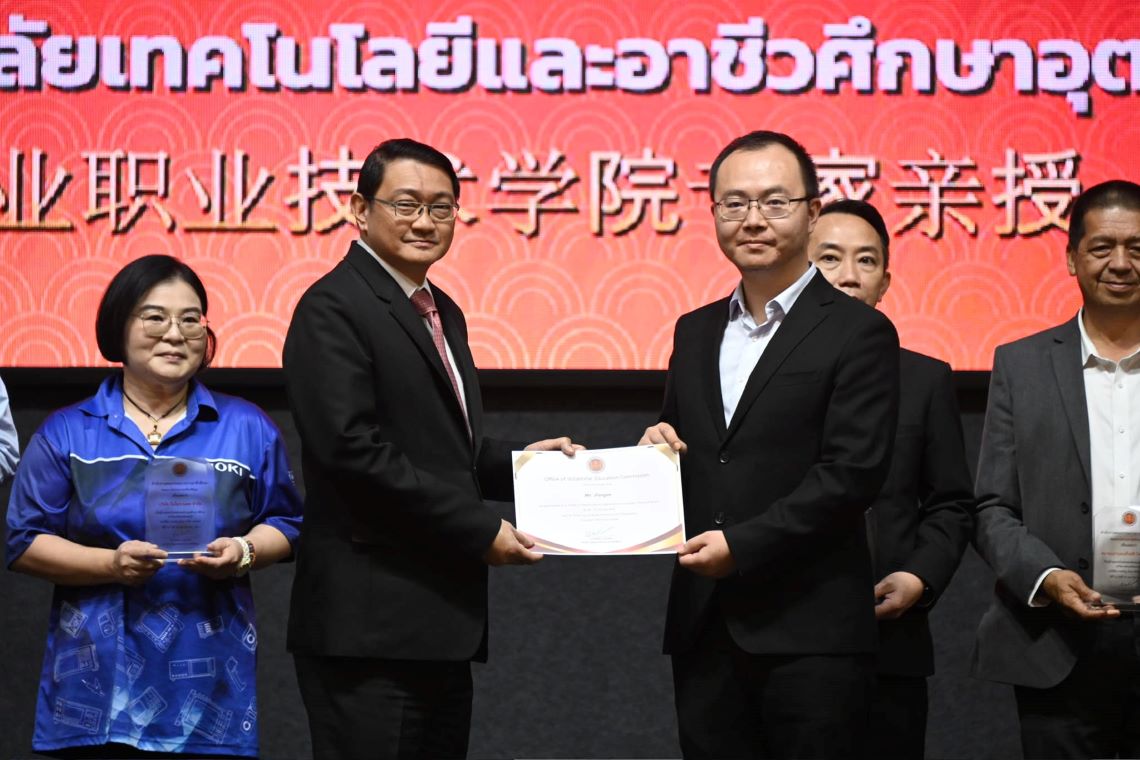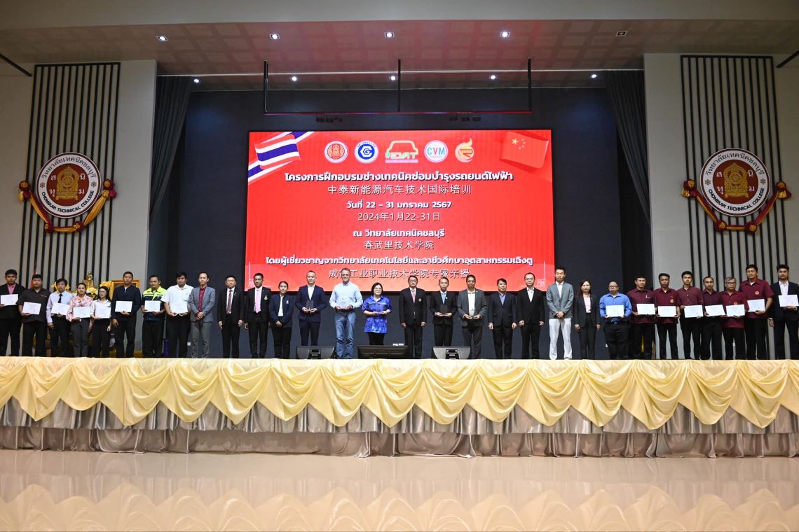 การมอบโล่เชิดชูเกียรติ แก่สถานประกอบการที่ทำคุณประโยชน์ มอบเกียรติบัตร ให้แก่ผู้ผ่านการอบรม “หลักสูตรช่างเทคนิคซ่อมบำรุงรถยนต์ไฟฟ้า” ภายใต้ความร่วมมือ อาชีวศึกษาไทย- จีน สาธารณรัฐประชาชนจีน จำนวน 27 คน มีการแข่งขัน Stream EV Young Challenge จำนวน 15 ทีม จากนักเรียนมัธยมศึกษา ในจังหวัดชลบุรี เพื่อสร้างแรงจูงใจมาเรียนสายอาชีพ ส่งเสริมทักษะทางวิชาชีพ ประดิษฐ์คิดค้น สิ่งประดิษฐ์ภายใต้ STEM