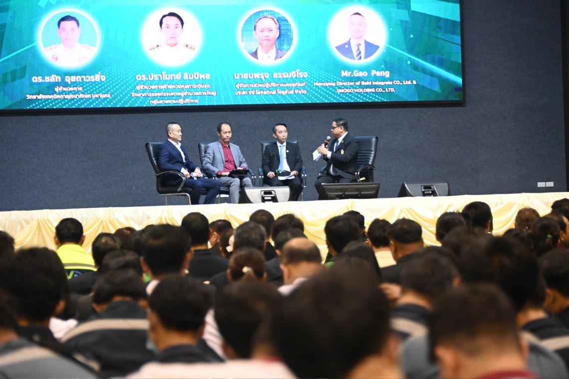 งานเสวนาวิชาการ “การพัฒนากำลังคนอาชีวศึกษาสมรรนะสูง ตอบโจทย์อุตสาหกรรมขนส่งและโลจิสติกส์ ตามยุทธศาสตร์ Green Ocean ” ผู้ดำเนินรายการ : ดร.ชลัท อุยถาวรยิ่ง ผู้อำนวยการ วิทยาลัยเทคนิคกาญจนาภิเษกมหานคร โดยผู้ร่วมเสวนา ประกอบด้วย ดร.ปราโมทย์ ลิมปิผล ผู้อำนวยการฝ่ายควบคุมการเดินรถ รักษาการรองกรรมการผู้อำนวยการใหญ่ กลุ่มสายงานปฏิบัติการ บริษัท รถไฟฟ้า ร.ฟ.ท. จำกัด นายนพรุจ ธรรมจิโรจ ผู้จัดการส่วนปฏิบัติการบรรจุภัณฑ์บริษัท จีซี โลจิสติกส์ โซลูชั่นส์ จำกัด และ Mr.Gao Peng ผู้อำนวยการฝ่ายบริหาร บริษัท โกลด์ อินทิเกรท จำกัด