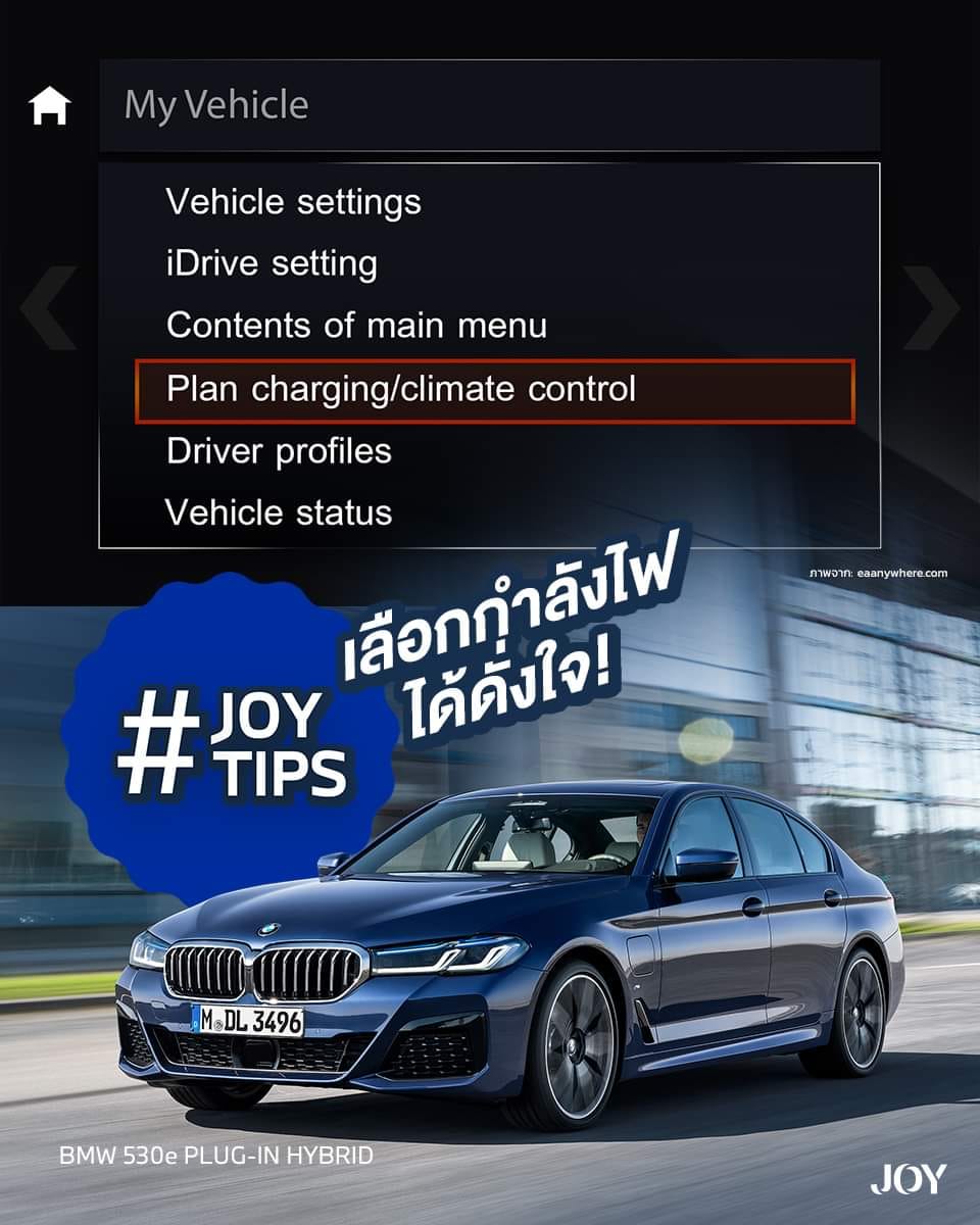ตัวอย่างจากหน้าจอ iDrive ของ BMW 530e Plug-in Hybrid ให้เลือก