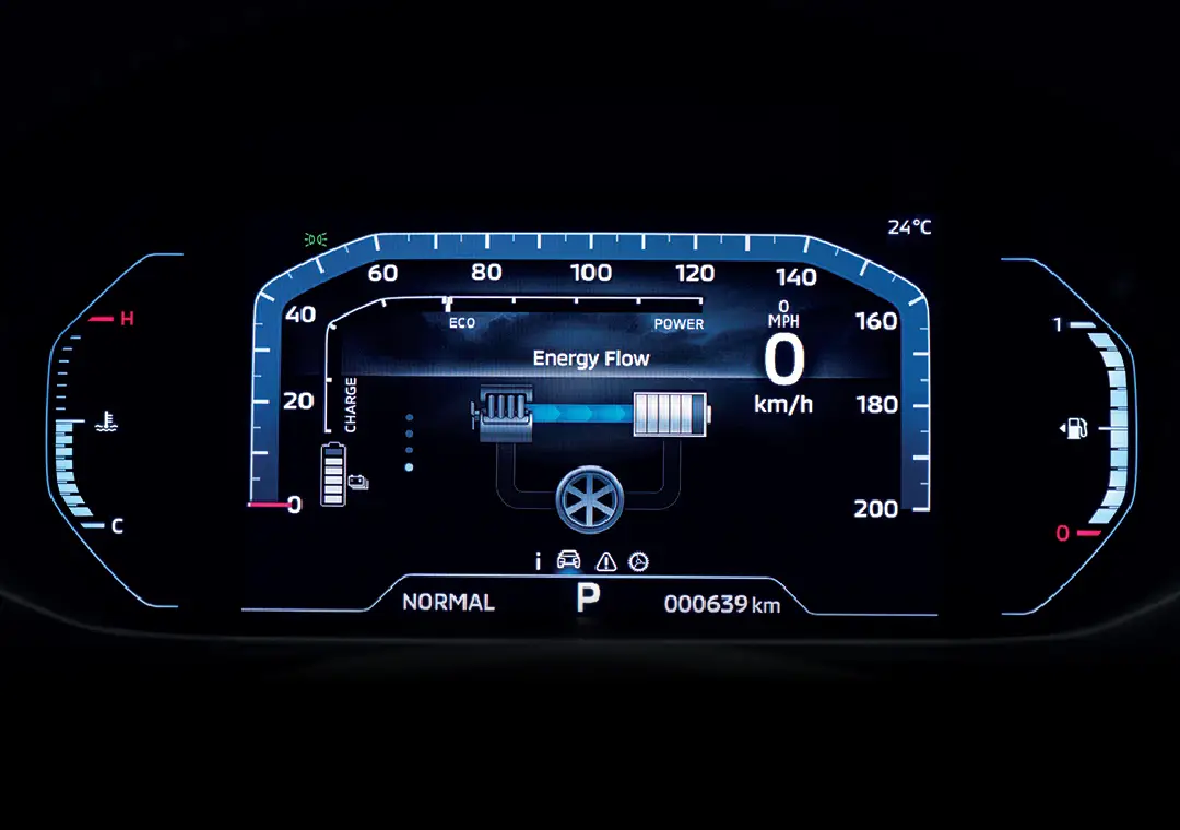 ภายในมีมิเตอร์จอแสดงผลคริสตัลเหลว (LCD) สีขนาด 8 นิ้ว พร้อมข้อมูลหลากหลายที่แสดงบนหน้าจอเพื่อการใช้งานที่ง่ายยิ่งขึ้น ข้อมูลเฉพาะของ HEV จะแสดงขึ้น เช่น มิเตอร์วัดกำลังที่ระบุสถานะที่ซิงค์กับการควบคุมคันเร่ง นอกเหนือจากการไหลของพลังงาน ประสิทธิภาพการขับขี่ของ EV และแบตเตอรี่ที่เหลืออยู่