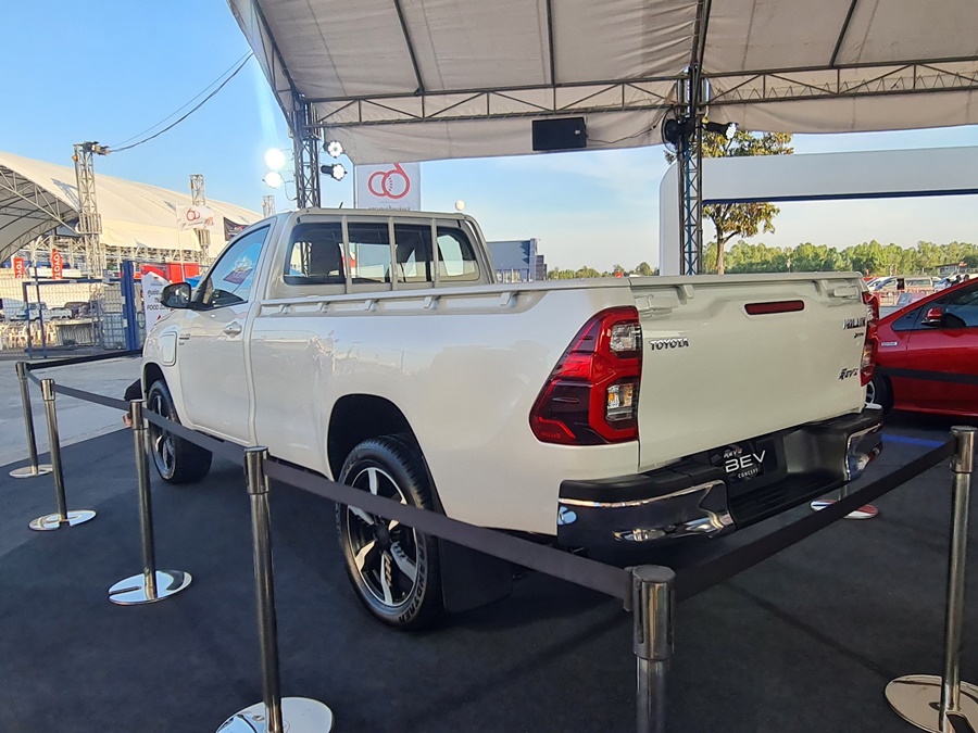 Toyota Hilux Revo BEV Concept เป็นต้นแบบรถกระบะขุมพลังไฟฟ้า 100% (BEV) ซึ่งมีพื้นฐานมาจาก Hilux Revo ตัวถังตอนเดียว (Single Cab) ถูกนำมาดัดแปลงติดตั้งมอเตอร์ไฟฟ้า แบตเตอรี่ ช่องชาร์จ ตลอดจนอุปกรณ์ส่วนควบอื่นๆ หน้าตาภายนอกมีการปรับดีไซน์ชุดกระจังหน้าให้มีลักษณะปิดทึบ (Closed Grille) ตามสไตล์รถยนต์ไฟฟ้าที่ไม่จำเป็นต้องดึงอากาศเข้าสู่ห้องเผาไหม้ของเครื่องยนต์ มีการติดป้ายสัญลักษณ์ BEV ที่ฝากระบะด้านท้าย
