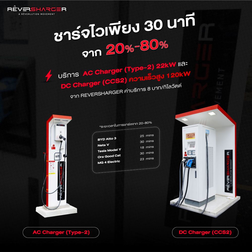 บริษัท ชาร์จ แมเนจเม้นท์ จำกัด จับมือกับ บริษัท เรเว่ ออโตโมทีฟ จำกัด ก่อตั้ง “RÊVERSHARGER” เดินหน้าขยายสถานีชาร์จครอบคลุมทั่วประเทศ นอกจากโชว์รูปของ BYD สถานชาร์จ RÊVERSHARGER มีพันธมิตรในธุรกิจอสังหาริมทรัพย์ ได้แก่ โรงแรม เดอะ สแตนดาร์ด โครงการแสนสิริ และโครงการชาญอิสระ รวมทั้งสถานีบริการน้ำมันบางจาก และสถานีบริการน้ำมันซัสโก้