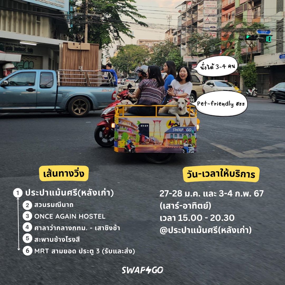 Swap&Go ส่ง “รถสองล้อไฟฟ้าพ่วงข้าง” ร่วมแจมงาน Bangkok Design Week 2024 ด้วยการพาผู้ร่วมงานออนทัวร์ในเส้นทาง ประปาแม้นศรี – สวนรมณีนาถ - ศาลาว่าการกรุงเทพมหานคร – MRT สามยอด แบบไร้มลพิษ