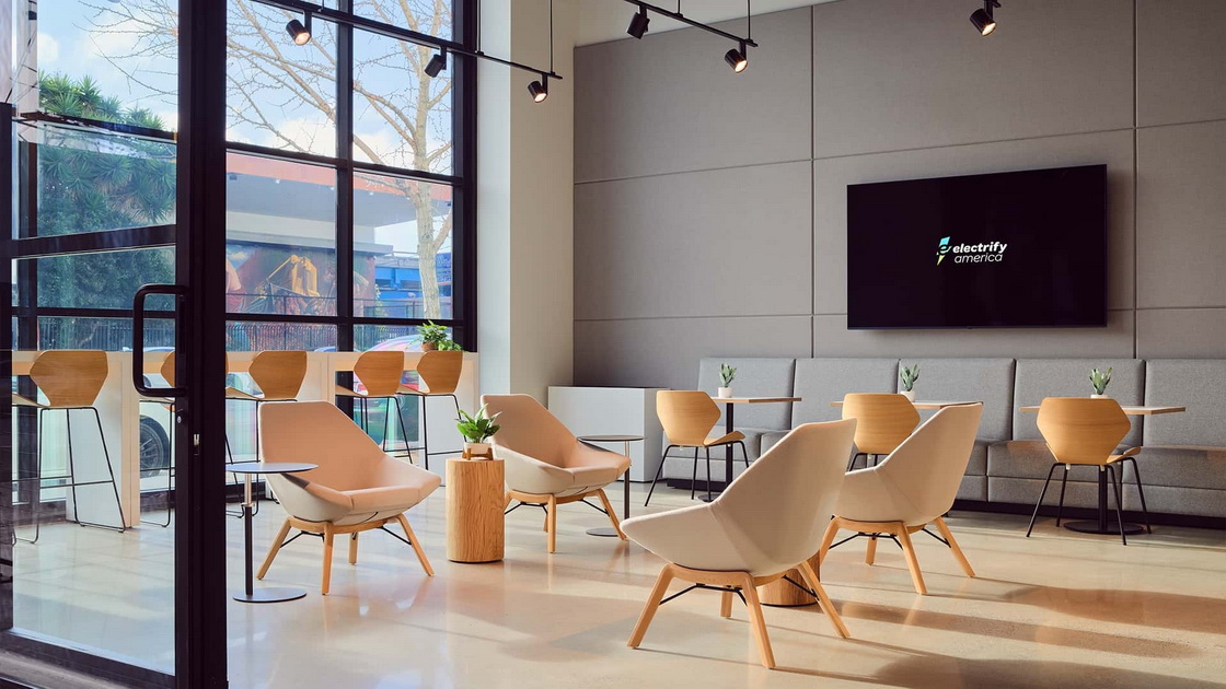 Electrify America (EA) เครือข่ายการชาร์จ DC Fast Charge แบบเปิดที่ใหญ่ที่สุดในสหรัฐอเมริกา เปิดสถานีชาร์จในร่มระดับเรือธงแห่งแรกในประเทศ สถานีชาร์จอินดอร์ของ EA ตั้งอยู่ที่ 928 Harrison Street ในซานฟรานซิสโก มีเครื่องชาร์จความเร็วสูงจำนวน 20 เครื่อง ซึ่งสามารถจ่ายไฟได้สูงสุดถึง 350 กิโลวัตต์ต่อคัน มีห้องรับรองควบคุมอุณหภูมิ 2 ห้องพร้อมตู้จำหน่ายอาหารและเครื่องดื่ม Wi-Fi ฟรี และห้องน้ำ