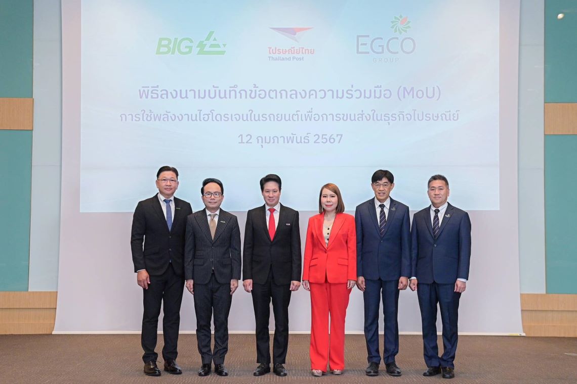 “ไปรษณีย์ไทย – บีไอจี – เอ็กโก” ลงนามบันทึกข้อตกลงความร่วมศึกษาการใช้พลังงานก๊าซไฮโดรเจนสำหรับขนส่งในรถยนต์เพื่อการขนส่งในธุรกิจไปรษณีย์ เมื่อวันที่ 12 กุมภาพันธ์ 2567