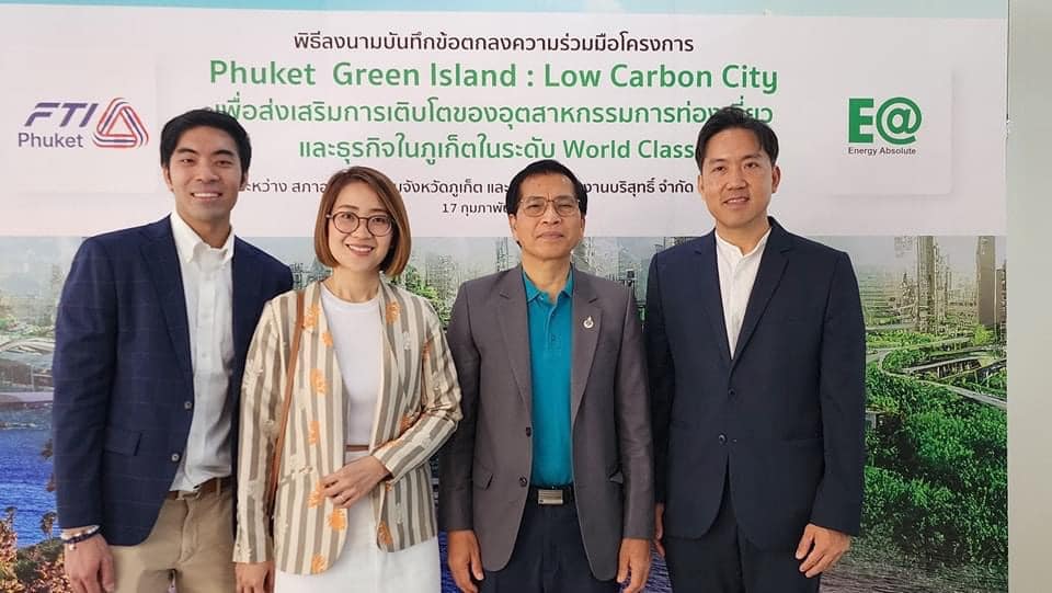 บมจ.พลังงานบริสุทธิ์ (EA) เซ็นเอ็มโอยูสภาอุตสาหกรรมจังหวัดภูเก็ต ร่วมสนับสนุนสร้างเมืองสีเขียวคาร์บอนต่ำ ซีอีโอ “สมโภชน์ อาหุนัย” ประกาศเดินหน้าร่วมมือทุกภาคส่วน ผลักดันภูเก็ตเป็นต้นแบบเมืองท่องเที่ยวรักษ์โลกระดับเวิลด์คลาส พร้อมนำ Green Business Platform ที่ใช้ไปประยุกต์ในจังหวัดอื่น หวังดันไทยเป็นประเทศอันดับต้นของโลกที่เข้าสู่ Carbon Neutral เร็วกว่ากำหนด