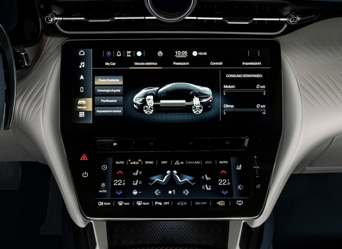 ในเวอร์ชั่นรถไฟฟ้าคันนี้ ทีมวิศวกรจาก Maserati Innovation Lab มอบประสบการณ์ระบบเครื่องเสียง Maserati Sound Audio System และมีออปชั่นพิเศษกับเครื่องเสียงสัญชาติอิตาลี 'Sonus Faber' ลำโพง 12 ตำแหน่ง และ 19 ตำแหน่งให้เลือก