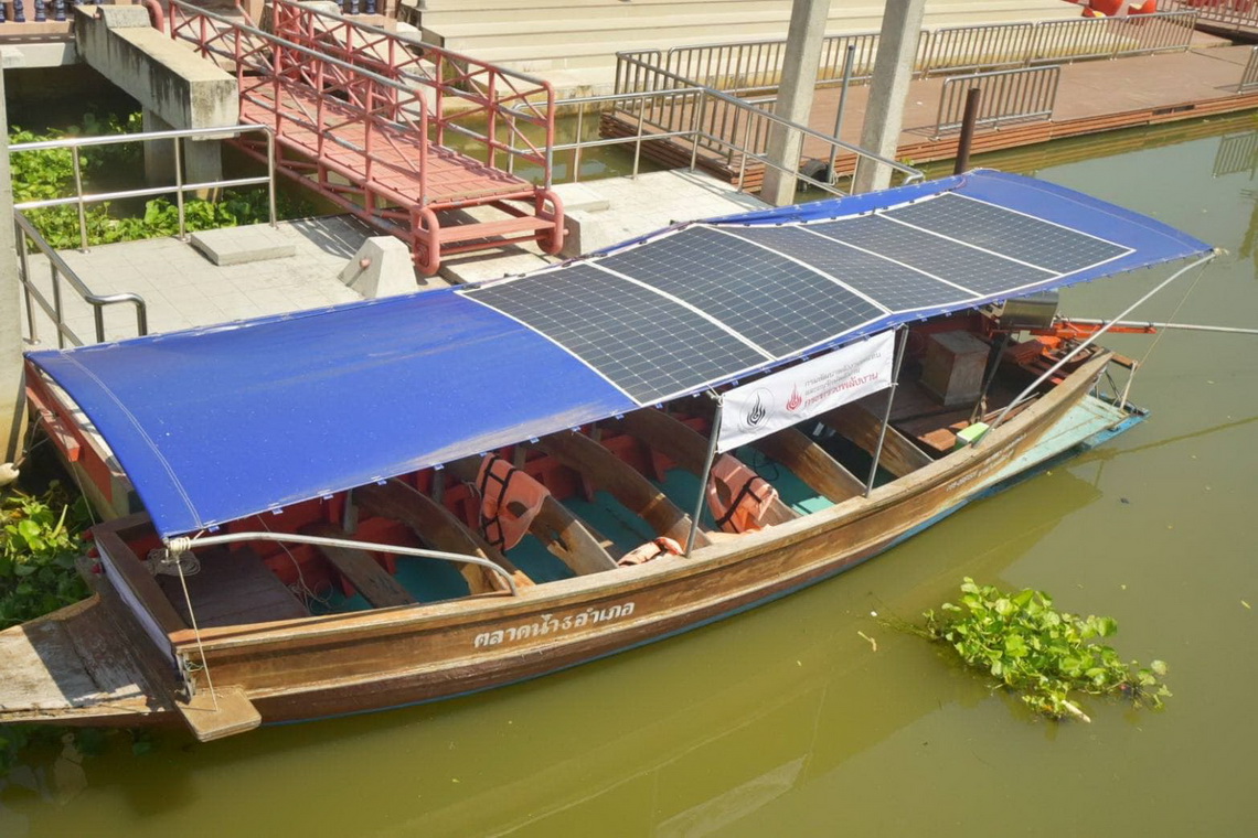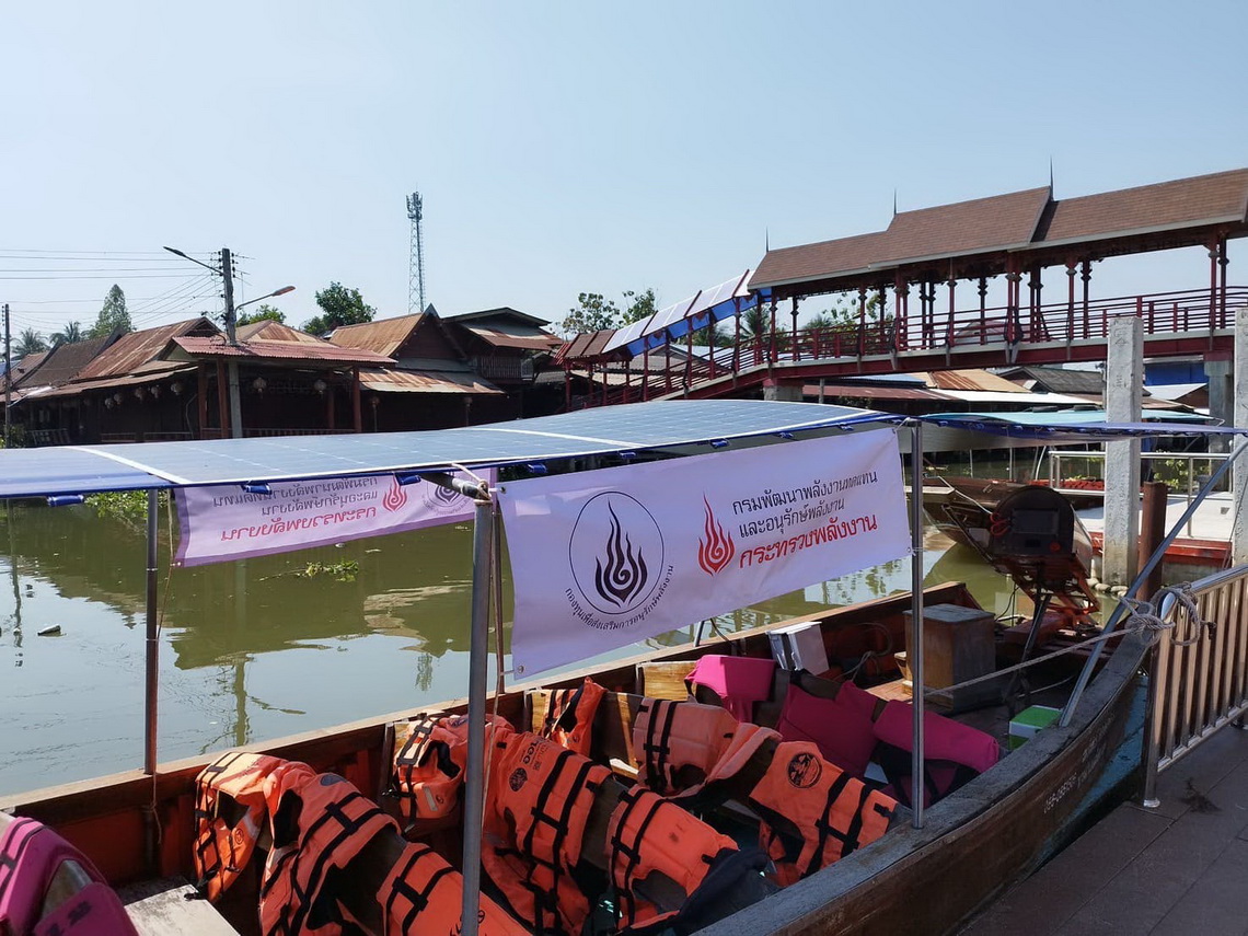 พพ. นำร่องดัดแปลงเรือไฟฟ้า ติดตั้งแบตเตอรี่ Lithium-ion ความจุ 10 kWh มอเตอร์ไฟฟ้า 18 kW ความเร็วทำการ 15 กม./ชม. วิ่งไกล 15 กม. ลดค่าใช้จ่ายด้านพลังงานจาก 10.5 บาท/กม. เหลือ 2.35 บาท/กม. เล็งเจาะกลุ่มGreen tourism