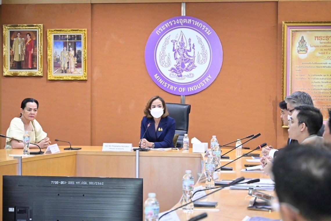 นางสาวพิมพ์ภัทรา วิชัยกุล รัฐมนตรีว่าการกระทรวงอุตสาหกรรม ร่วมหารือกับนางสมฤดี ชัยมงคล ประธานเจ้าหน้าที่บริหาร บริษัท บ้านปู จำกัด (มหาชน) และนายหยาง หงซิน ประธานและประธานเจ้าหน้าที่บริหาร บริษัท เอส โวลต์ เอเนอร์จี้ เทคโนโลยี (ประเทศไทย) จำกัด (svolt energy) ในประเด็นนโยบายของกระทรวงอุตสาหกรรม ที่เกี่ยวข้องกับการผลิตเซลล์แบตเตอรี่ในประเทศไทย โดยมีนายดนัยณัฏฐ์ โชคอำนวย ที่ปรึกษารัฐมนตรีว่าการกระทรวงอุตสาหกรรม นายณัฐพล รังสิตพล ปลัดกระทรวงอุตสาหกรรม นายวันชัย พนมชัย เลขาธิการสำนักงานมาตรฐานผลิตภัณฑ์อุตสาหกรรมนายกฤศ จันทร์สุวรรณ รองผู้อำนวยการสำนักงานเศรษฐกิจอุตสาหกรรม นางบุปผา กวินวศิน รองผู้ว่าการ (สำนักผู้ว่าการ) การนิคมอุตสาหกรรมแห่งประเทศไทย นายชัยวิชิต ลิขิตาภรณ์ ผู้อำนวยการกองกำหนดมาตรฐาน สำนักงานมาตรฐานผลิตภัณฑ์อุตสาหกรรม นายพลาวุธ วงศ์วิวัฒน์ ผู้อำนวยการกองยุทธศาสตร์และแผนงาน สำนักงานปลัดกระทรวงอุตสาหกรรม เข้าร่วมด้วย ณ ห้องประชุมชุณหะวัณ ชั้น 3 อาคารสำนักงานกระทวงอุตสาหกรรม เมื่อวันที่ 29 กุมภาพันธ์ 2567