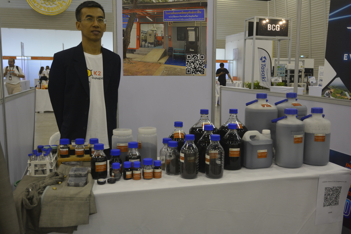 จริงๆ แล้วการผลิตกราฟีน นั้นสามารถผลิตกันได้จากหลายๆแลบวิจัย แต่เรามีโรงงานต้นแบบสามารถผลิตกราฟีนได้ปริมาณมากในระดับอุตสาหกรรม จึงสามารถผลิตกราฟีนได้ในปริมาณมาก เพียงพอในการพัฒนานวัตกรรมใหม่ๆได้ เมื่อสามารถผลิตกราฟีนได้มากแล้ว ก็ได้มาพิจารณากันต่อว่าไป สามารถนำกราฟีนมาพัฒนาเป็นนวัตกรรมอะไรได้บ้าง