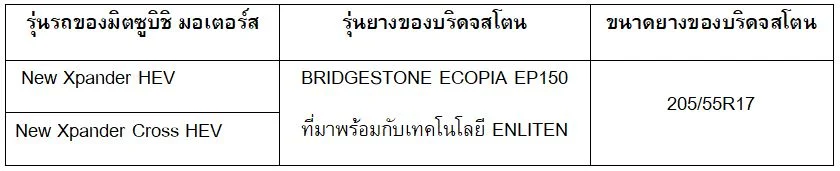 มีรายงานข่าวจาก บริษัท ไทยบริดจสโตน จำกัด เปิดเผยว่าผลิตภัณฑ์ BRIDGESTONE ECOPIA EP150 ยางรักษ์โลกเทคโนโลยี ENLITEN นวัตกรรมใหม่การออกแบบยางรถยนต์ของบริษัทฯได้รับเลือกให้เป็นยางล้อมาตรฐานในรถยนต์ระบบขับเคลื่อนฟูลไฮบริด New Xpander HEV และ New Xpander Cross HEV รุ่นใหม่จากมิตซูบิชิ มอเตอร์ส ที่มีการเปิดตัวครั้งแรกของโลกในประเทศไทยไปเมื่อวันที่ 1 กุมภาพันธ์ 2567 ที่ผ่านมา ด้วยคุณสมบัติเด่น 3 ด้าน