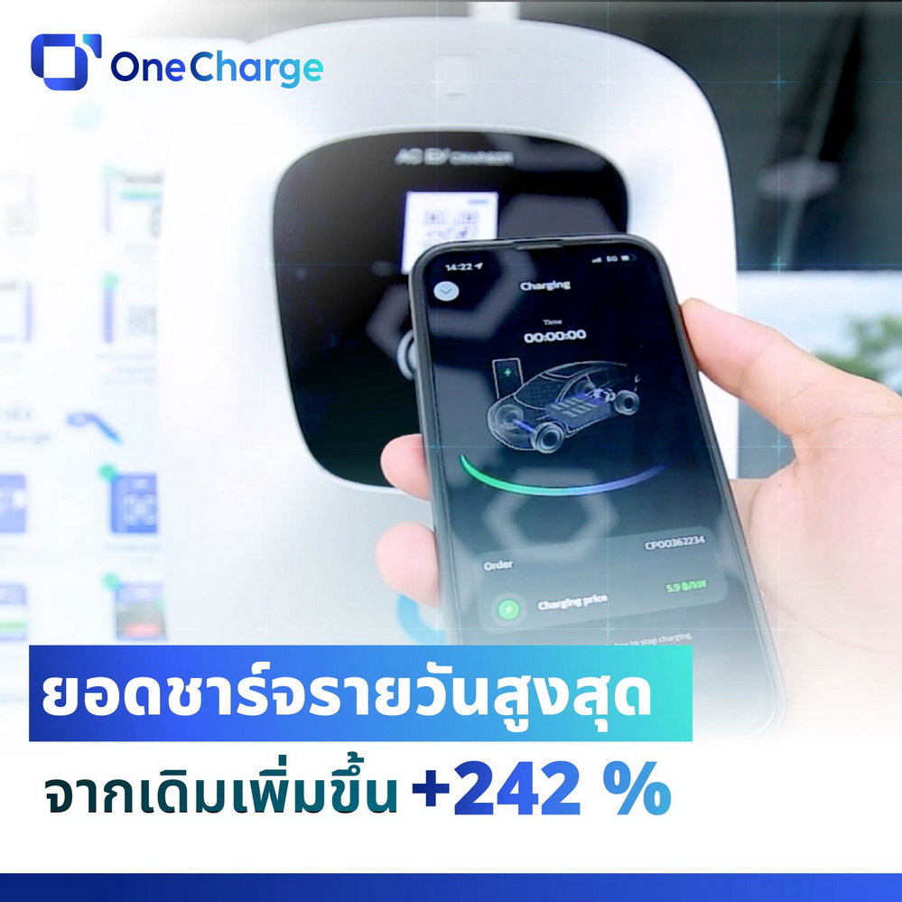 OneCharge อัพเดทผลงานช่วง 2 เดือนแรก ปี 2024 (มกราคม-กุมภาพันธ์) ยอดชาร์จรายวันสูงสุดเพิ่มขึ้นจากปกติ 242% จำนวนผู้ใช้แอปพลิเคชันสะสมเพิ่มขึ้น 27% จำนวนสถานีชาร์จในเครือข่ายเพิ่มขึ้น 28 สถานี