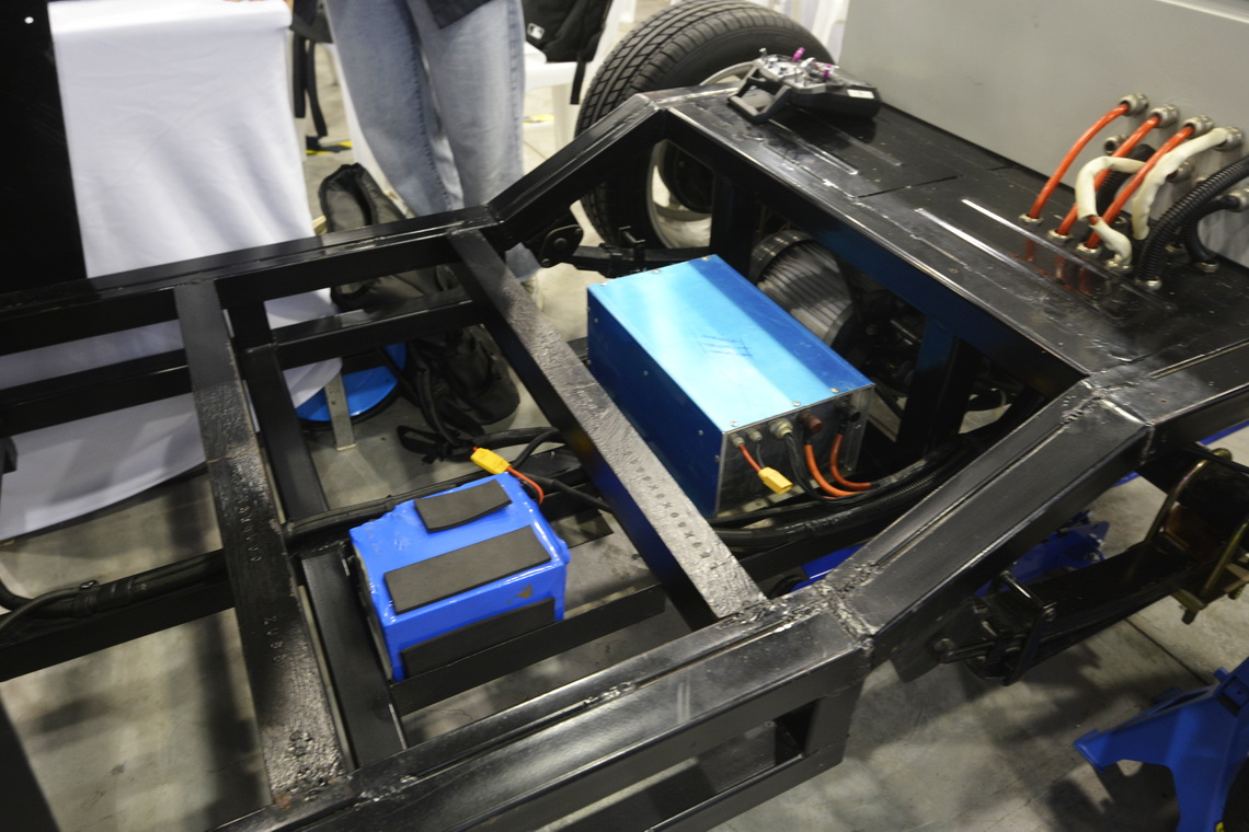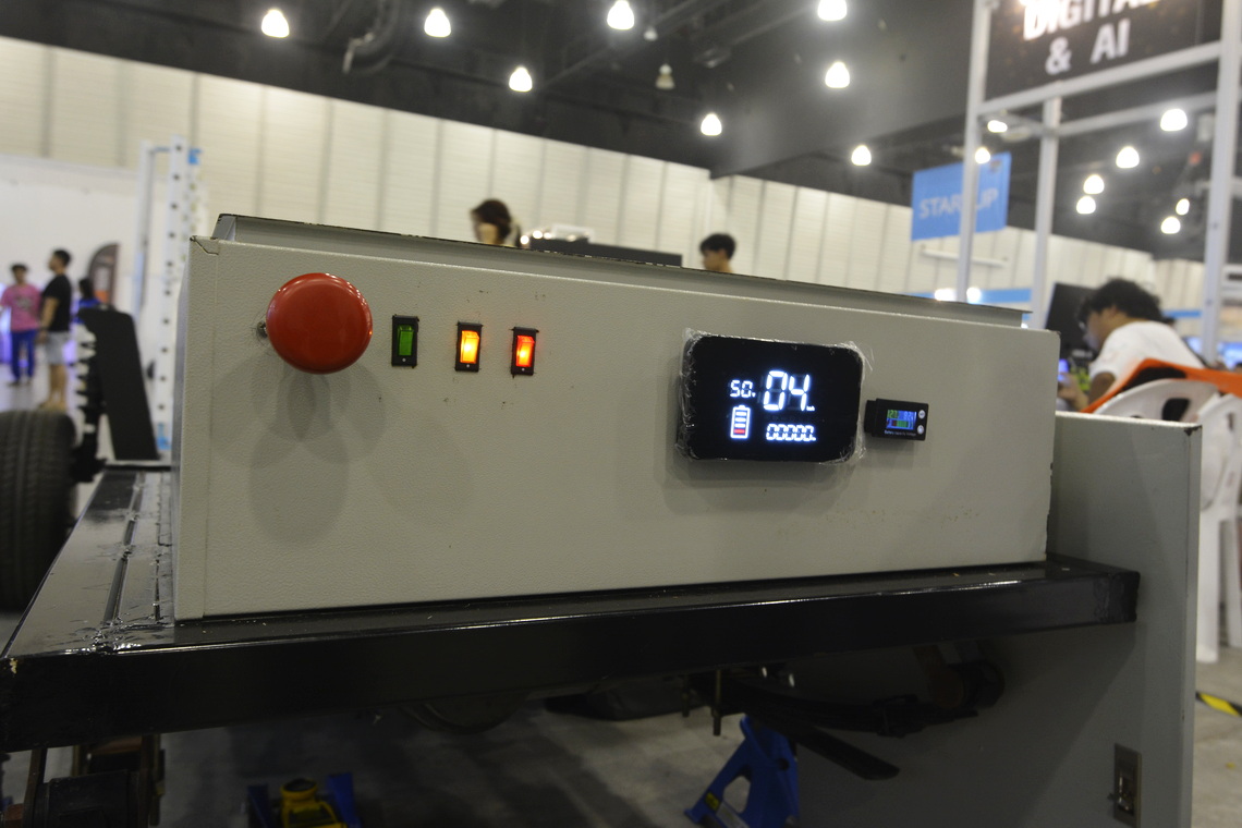 นายจตุรภัทร สว่างศรี ได้อธิบายถึงผลงานการสร้างสรรค์ของกลุ่มฯ ว่าเป็นแพล็ตฟอร์มที่พัฒนาขึ้นมาเพื่อเป็นรถต้นแบบ รถที่ได้มาตอนแรกมีแต่โครง ต้องเอามารื้อของเก่าออกก่อน จากนั้นติดตั้งระบบขับเคลื่อนใหม่หมด โดยใช้แบตเตอรี่ลิเทียมไอออน 2 ลูก ขนาด 12 โวลต์ กับ 54 โวลต์ แบตเตอรี่ก้อนเล็กจะใช้เลี้ยงวงจรควบคุมการจ่ายไฟให้กับมอเตอร์ด้านหน้า ส่วนแบตเตอรี่ที่ใช้ในการขับเคลื่อนจะเป็นขนาด 54 โวลต์ ติดตั้งมอเตอร์ 2 ตัว