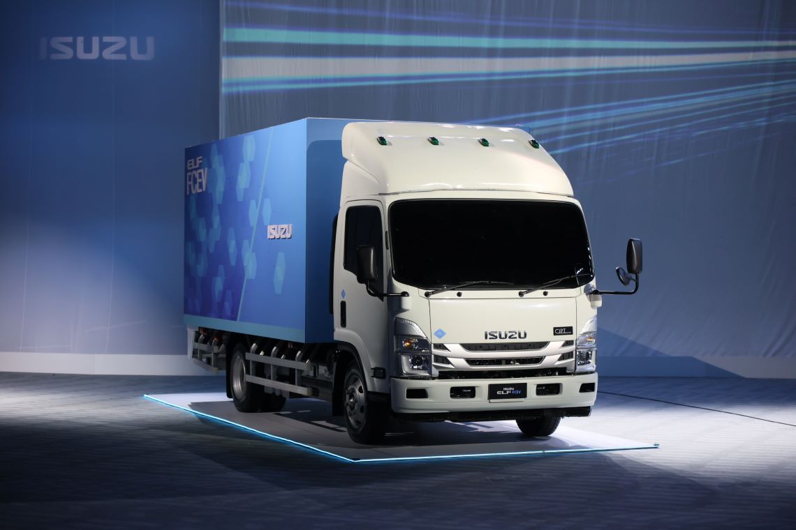 4.รถบรรทุกไฟฟ้าขนาดกลางเซลล์เชื้อเพลิงไฮโดรเจน (Isuzu Elf FCEV) การพัฒนาร่วมกันระหว่างพันธมิตรทางธุรกิจ ภายใต้โครงการ Commercial Japan Partnership Technologies Corporation (CJPT) เหมาะกับการใช้งานบรรทุกหนัก สามารถเติมเชื้อเพลิงได้รวดเร็ว และไม่ก่อให้เกิดมลพิษ เป็นการเพิ่มตัวเลือกรถบรรทุกในตลาด ตอบรับกับความต้องการก้าวสู่ยุคความเป็นกลางทางคาร์บอน โดยในญี่ปุ่นได้มีการวิ่งทดสอบตามการใช้งานจริงตามเมือง และประเภทการใช้งานต่างๆ จำนวน 90 คัน เมื่อเดือนมกราคม 2566 ที่โตเกียว ฟุกุชิมะ และฟุกุโอกะ ส่วนประเทศไทยได้มีการวิ่งทดสอบแล้วจำนวน 4 คัน เมื่อเดือนกันยายน ถึงพฤศจิกายน 2566
