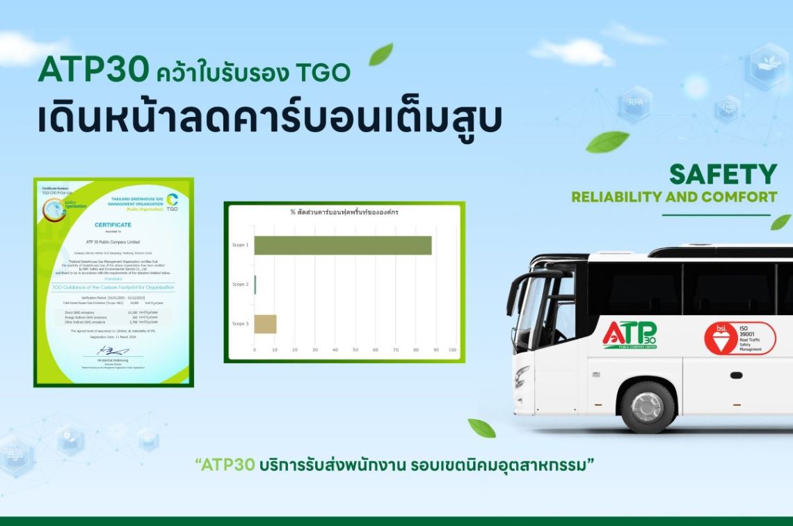 นายปิยะ เตชากูล กรรมการผู้จัดการ บริษัท เอทีพี 30 จำกัด (มหาชน) หรือ ATP30 ผู้ดำเนินธุรกิจให้บริการรถรับส่งพนักงานจากแหล่งที่พักอาศัยในเขตชุมชนไปยังโรงงานอุตสาหกรรมหรือสถานประกอบการโดยเฉพาะรอบเขตนิคมอุตสาหกรรมในภาคตะวันออก (Eastern Seaboard) เปิดเผยว่า บริษัทได้ใบรับรองคาร์บอนฟุตพริ้นท์ขององค์กร จากองค์การบริหารจัดการก๊าซเรือนกระจก (องค์การมหาชน) หรือ อบก. (TGO) ภาคการบริการ และสำนักงาน