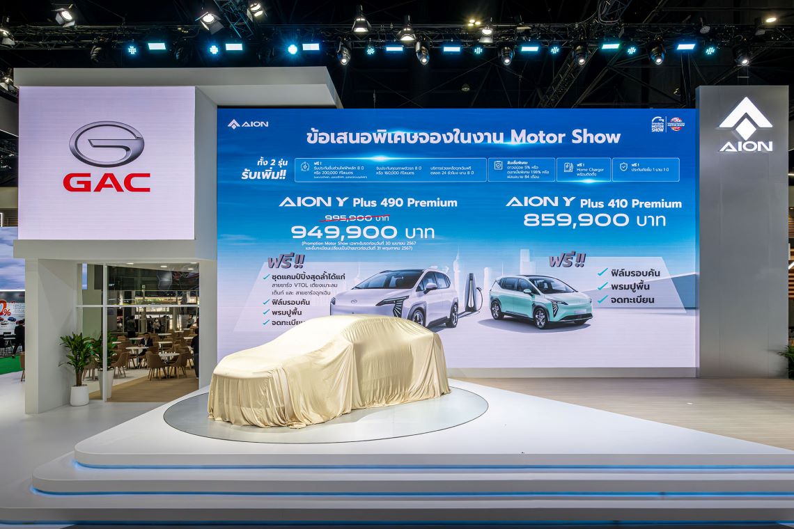 GAC AION เปิดตัว AION Y Plus 410 Premium เคาะราคา 859,900 บาท ในงานมอเตอร์โชว์ 2024 ชูจุดเด่นฟีเจอร์และฟังก์ชันช่วยเหลือการขับขี่อัจฉริยะ.พร้อมมอบโปรโมชั่นพิเศษ AION Y Plus 410 Premium และ AION Y Plus 490 Premium แบบจัดเต็ม