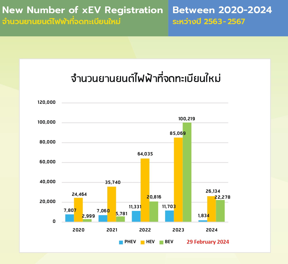 อัพเดตสถิติการจดทะเบียนยานยนต์ไฟฟ้าทุกประเภท ย้อนหลัง 5 ปี (พ.ศ. 2563-2567) ณ วันที่ 29 ก.พ. 2567