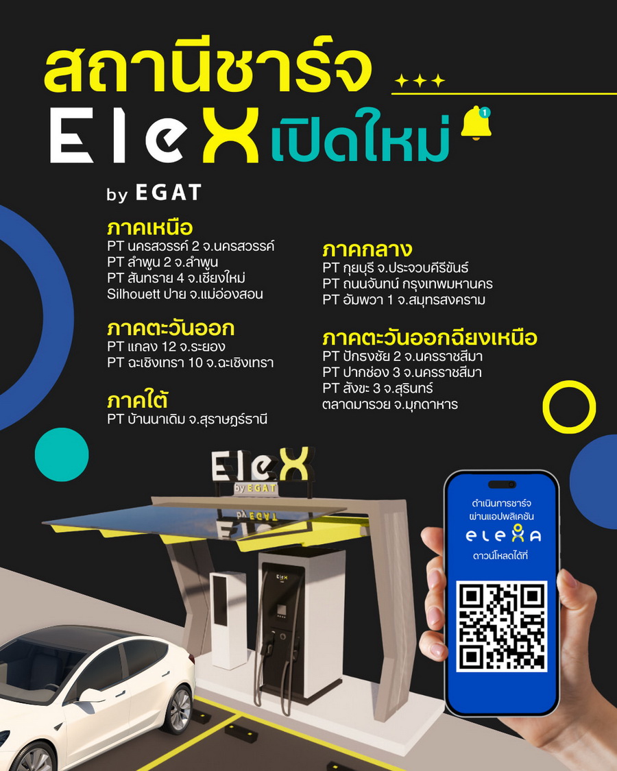 สถานีของ EleX by EGAT กระจายตัวอยู่ตามเส้นทางต่างๆทั่วประเทศมากกว่า 50 แห่ง