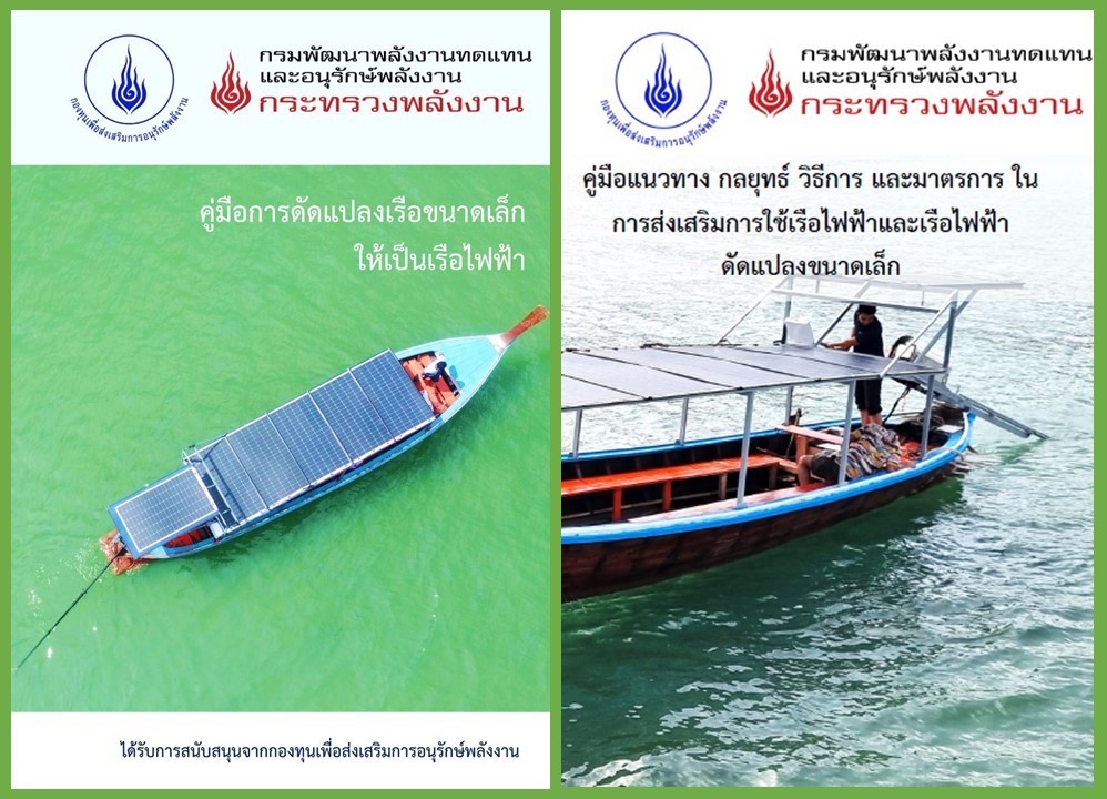 หลังจากนำคณะสื่อมวลชนเดินทางตรวจเยี่ยมความก้าวหน้าโครงการพัฒนานโยบายและมาตรการส่งเสริมเรือไฟฟ้าขนาดเล็ก จังหวัดสมุทรสงคราม โดยเป็นโครงการที่มุ่งเน้นศึกษาแนวทางการส่งเสริมการใช้เรือไฟฟ้าขนาดเล็กเพื่อการอนุรักษ์พลังงาน ช่วยลดการปล่อยก๊าซคาร์บอนไดออกไซค์ในภาคขนส่งทางน้ำได้ไม่นานนัก กรมพัฒนาพลังงานทดแทนและอนุรักษ์พลังงาน (พพ.) ก็ได้แผยแพร่คู่มือดัดแปลงเรือขนาดเล็กให้เป็นเรือไฟฟ้า ลงในเว็บไซต์ www.dede.go.th โดยเนื้อหาประกอบด้วย