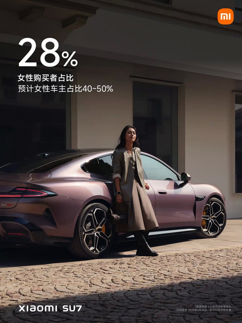 Lei Jun แถลงในงานแสดงยานยนต์นานาชาติปักกิ่งประจำปี 2024 โดยแชร์ข้อมูลเชิงลึกด้านประชากรศาสตร์เกี่ยวกับผู้ซื้อ SU7 ว่าเป็นผู้หญิง 28% ปัจจุบันขับรถ BMW, Mercedes Benz และ Audi และ 51.9% เป็นผู้ใช้ Apple