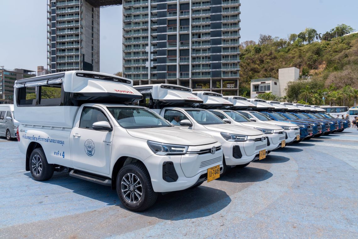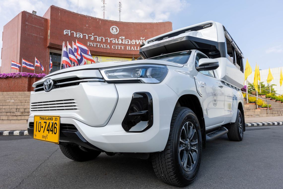 โตโยต้า ส่งมอบรถกระบะไฟฟ้า Hilux Revo-e ประกอบในไทย สำหรับทดลองให้บริการในรูปแบบรถสองแถวในเมืองพัทยา คัน ภายใต้ “โครงการพัฒนาเมืองต้นแบบที่ยั่งยืนปราศจากมลภาวะ” ให้แก่สหกรณ์เดินรถพัทยา ตามแนวทาง Multi Pathway มุ่งผลักดันพัทยาเป็นเมืองต้นแบบการเดินทางที่เป็นมิตรต่อสิ่งแวดล้อม
