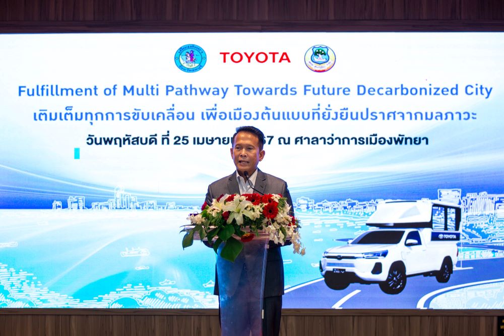 นายสุรภูมิ อุดมวงศ์ รองกรรมการผู้จัดการใหญ่ บริษัท โตโยต้า มอเตอร์ ประเทศไทย จำกัด กล่าวว่า “ในวันนี้ เราได้เติมเต็มทุกการขับเคลื่อน เพื่อเมืองต้นแบบที่ยั่งยืนปราศจากมลภาวะ ภายใต้แนวทาง Multi Pathway โดยการนำรถกระบะ Hilux Revo-e มาดัดแปลงเป็นรถสองแถว เพื่อให้บริการแก่ประชาชนและนักท่องเที่ยวในเมืองพัทยา เพื่อผลักดันพัทยา ให้เป็นต้นแบบเมืองอัจฉริยะของไทย ในด้านการเดินทางที่เป็นมิตรต่อสิ่งแวดล้อม อันเป็นส่วนสนับสนุนเป้าหมายของประเทศ ในการสร้างความเป็นกลางทางคาร์บอน ต่อไป ”