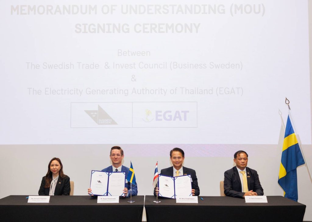 กฟผ. และการค้าสวีเดนร่วมลงนามแลกเปลี่ยนองค์ความรู้และเทคโนโลยีพลังงานสะอาดด้านเชื้อเพลิงชีวมวล และระบบกักเก็บพลังงานไฮโดรเจน เดินหน้าเพิ่มสัดส่วนการผลิตไฟฟ้าพลังงานสะอาด มุ่งสู่เป้าหมาย Net Zero Emission