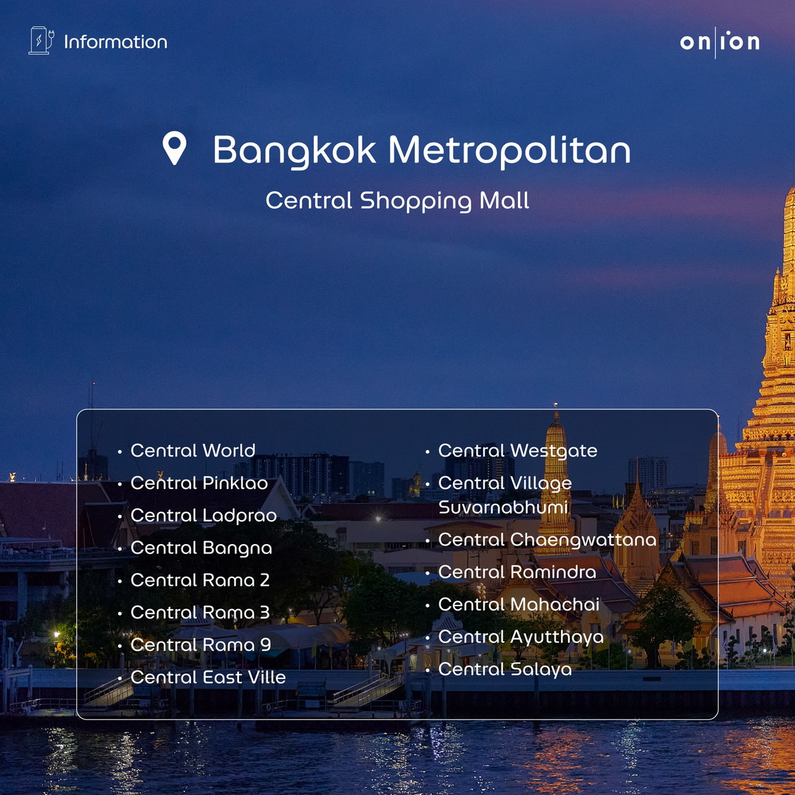 on-ion ปักหมุดสถานีชาร์จรถ EV แล้ว 70 แห่งทั่วไทย ให้บริการด้วยเครื่องชาร์จมากกว่า 500 เครื่อง ล่าสุดเปิดจุดชาร์จใหม่ที่ เซ็นทรัล นครสวรรค์ บริเวณ ชั้น LG ติดตั้งเครื่องชาร์จ AC Charger (7 kW) 3 ช่องจอด เปิดให้บริการทุกวัน เวลา 10:00 น. - 21.00 น. โดยก่อนหน้านี้ ได้เปิดให้บริการที่เซ็นทรัล นครปฐม ชั้น B2 ติดตั้งเครื่องชาร์จ AC Charger (22 kW) 1 ช่องจอด และเครื่อง DC Charger (25 kW) 2 ช่องจอด เปิดให้บริการทุกวัน เวลา 10:00 น. - 22.00 น.