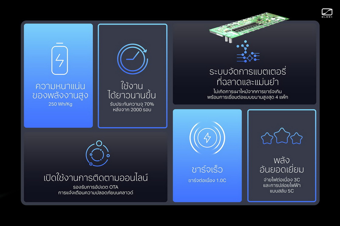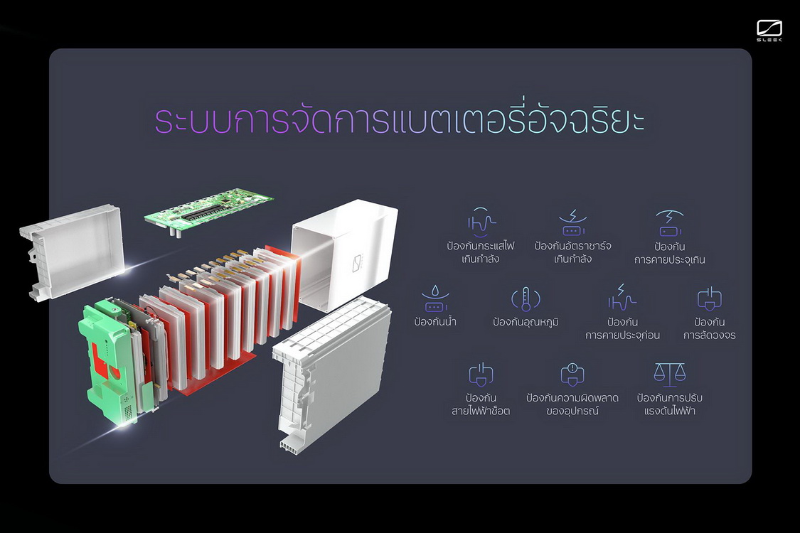 อินไซด์แบตเตอรี่มอเตอร์ไซค์ไฟฟ้า SLEEK EV เทคโนโลยีชาร์จเร็ว 1C