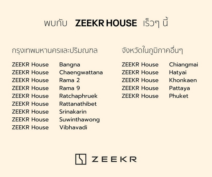 ZEEKR Thailand ระดมเปิด ZEEKR House 14 สาขาทั่วประเทศ รองรับการเปิดตัว ZEEKR X และ ZEEKR 009 กลางปี 2567