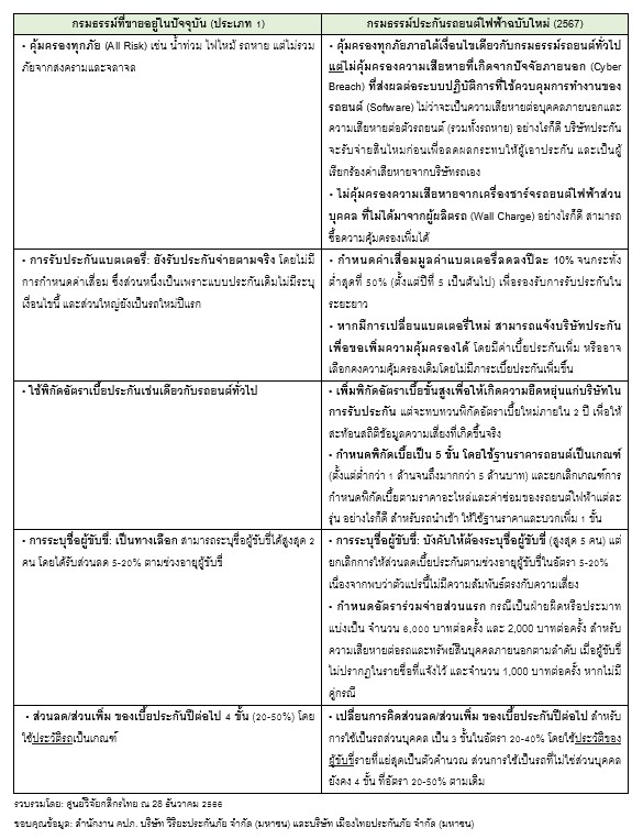 ข้อแตกต่างระหว่างกรมธรรม์สำหรับรถ BEV กับกรมธรรม์ฉบับเดิมจะเป็นอย่างไร สามารถสรุปเป็นประเด็นคร่าวๆ ดังนี้