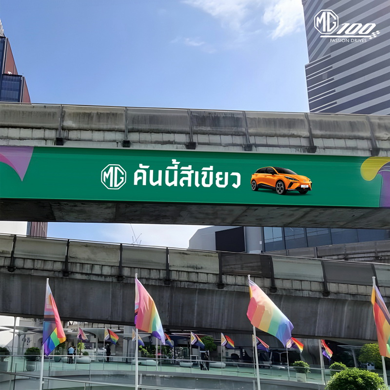 อย่างค่าย MG มาแบบมีม 2 ชั้น ขั้นกว่า ทั้งล้อเลียนป้ายใหม่ กทม. ทั้งล้อเล่นกับสติ๊กเกอร์ติดรถที่เคยฮิตกันก่อนหน้านี้ กับข้อความสั้นๆ “ขอบอกทุกคนว่า MG คันนี้สีเขียวจริง ๆ นะ”