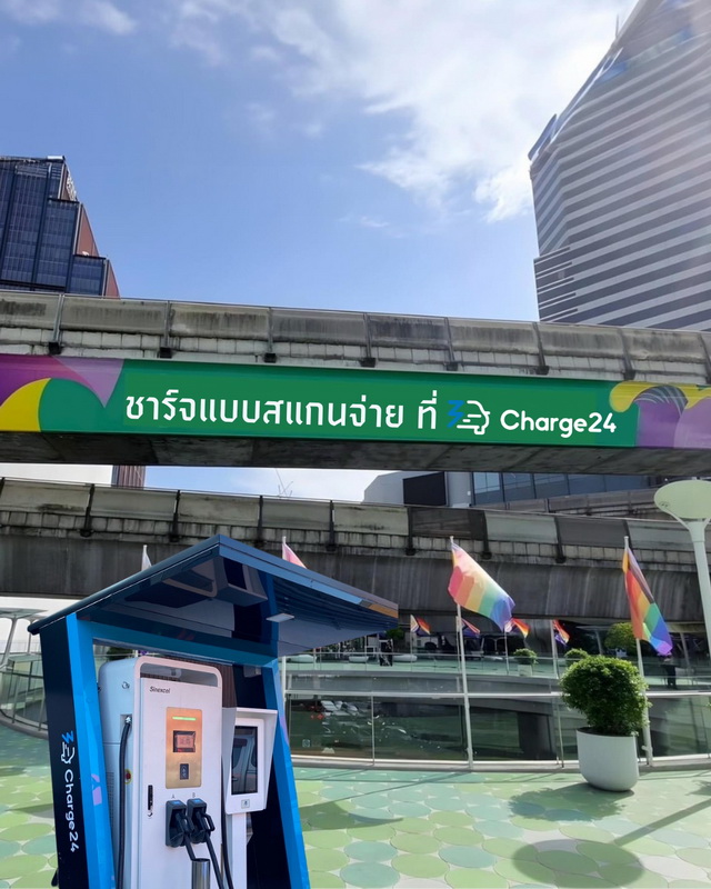 ส่วน Charge24 สถานีชาร์จน้องใหม่ก็ไม่ตกเทรนด์ มากับป้าย “ชาร์จแบบสแกนจ่าย ได้ที่ Charge24 พบกับ 4 สถานีแรก กรุงเทพ – ปริมณฑล”