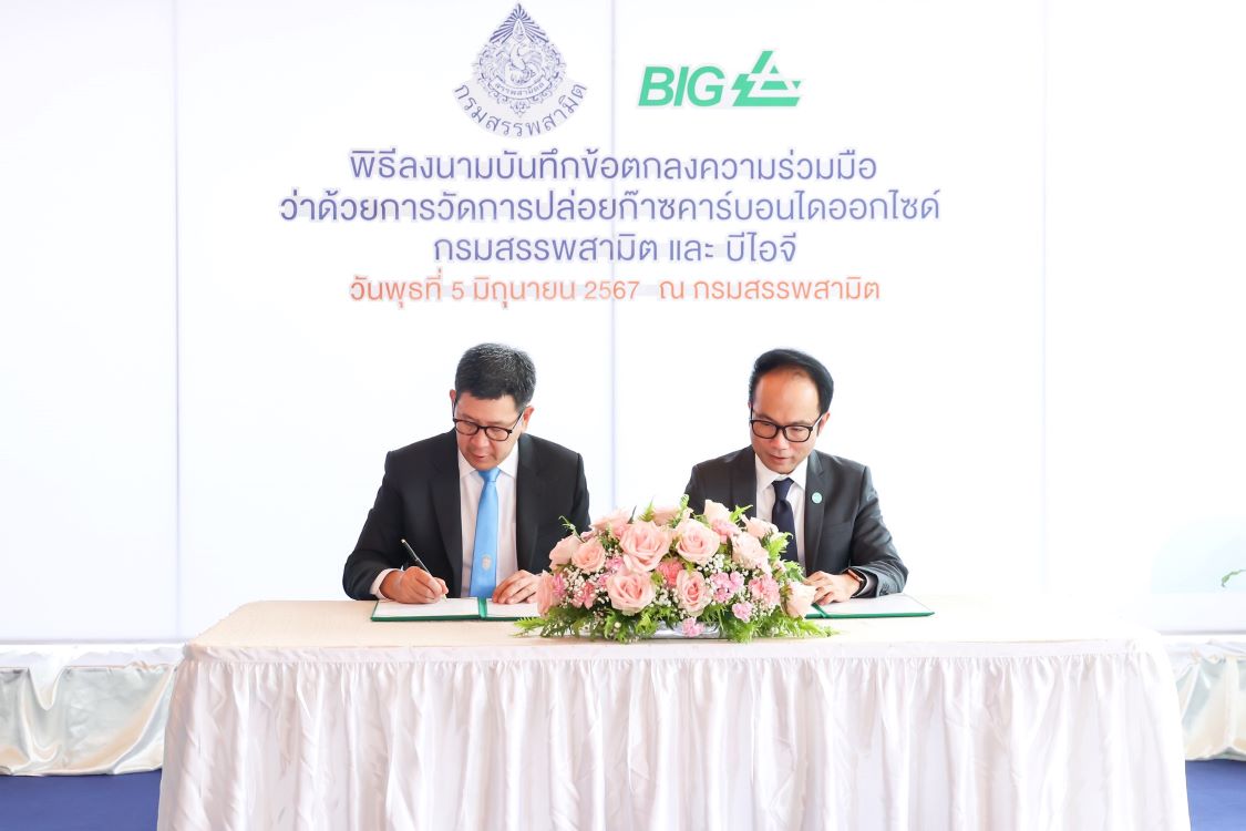 ดร. เอกนิติ นิติทัณฑ์ประภาศ อธิบดีกรมสรรพสามิต และนายปิยบุตร จารุเพ็ญ กรรมการผู้จัดการ บีไอจี ร่วมลงนามบันทึกข้อตกลง (MOU) เพื่อสร้างความร่วมมือในการวัดปริมาณการปล่อยก๊าซคาร์บอนไดออกไซด์ รวมถึงแนวทางในการใช้พลังงานอย่างมีประสิทธิภาพ เพื่อนำไปสู่การบริหารจัดการ การปล่อยก๊าซคาร์บอนของกรมสรรพสามิต นำไปสู่การลดการปล่อยก๊าซเรือนกระจกสุทธิเป็นศูนย์ หรือ Net Zero เมื่อวันที่ 5 มิถุนายน 2567 ที่หอประชุมกรมสรรพสามิต