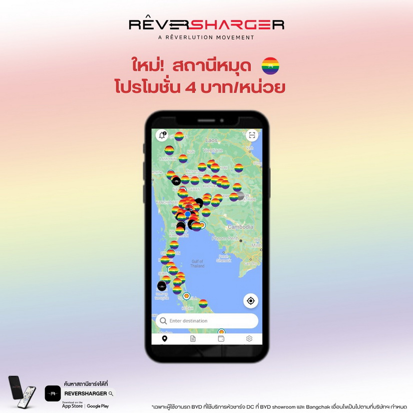 นี่ก็ไม่ธรรมดา... REVERSHARGER ปักหมุดสถานีชาร์จต้อนรับ Pride Month ด้วยหมุดสีรุ้งแสดงพิกัดสถานีชาร์จตาม BYD showroom และ ปั๊ม Bangchak