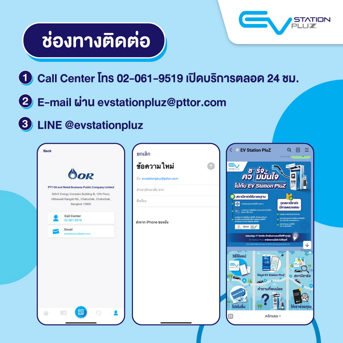 ใช้งานผ่านแอปพลิเคชัน EV Station PluZ บนระบบปฏิบัติการ iOS และ Android
