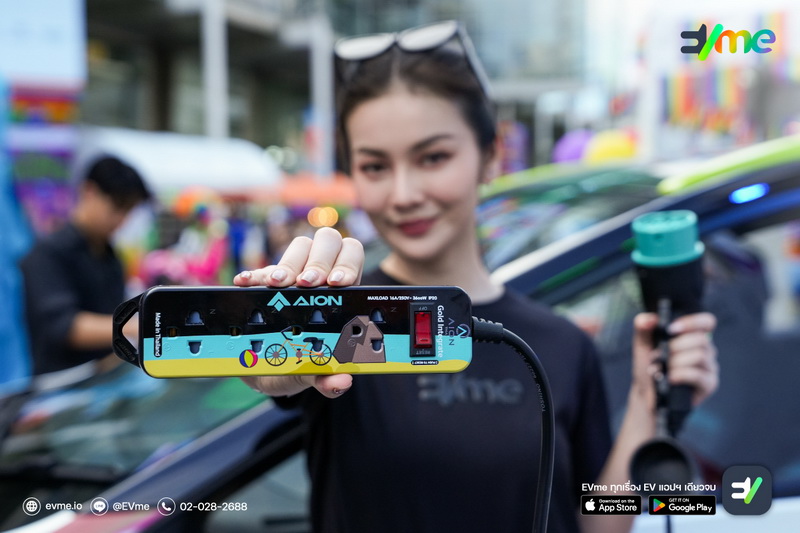 เคล็ดลับง่ายๆ แค่ใช้ฟังก์ชั่น V2L (Vehicle-to-Load) ถ่ายโอนพลังงานจากแบตเตอรี่ของรถยนต์ไฟฟ้า GAC AION Y Plus จ่ายไฟให้เครื่องปั่น EVme SLURPEE ปั่นเสลอปี้แจกให้กับทุกคนที่แวะเข้ามาที่บูท EVme ภายในงาน Pride บริเวณลานหน้าเซนทรัลเวิลด์ เมื่อเร็วๆนี้
