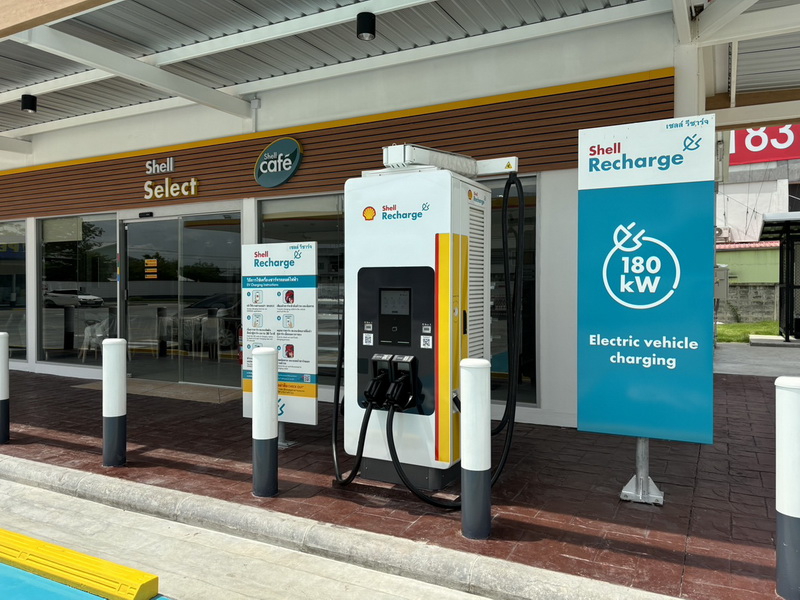 เชลล์อาจจะยังโฟกัสที่ธุรกิจน้ำมันเป็นหลัก ไม่เน้นการขยายจุดชาร์จรถ EV มากนัก ปัจจุบันมีจุดชาร์จทั่วประเทศเพียงสิบกว่าแห่ง และไม่มีข่าวคราวการเปิดสถานีชาร์จใหม่ๆออกมามากนัก แต่ล่าสุด ใครผ่านไปย่านถนนรามอินทรา ซึ่งเป็นย่านที่มีประชากรหนาแน่น และปริมาณการใช้รถ EV พุ่งสูง ก็จะเห็นการเปลี่ยนแปลงภายในปั๊มเชลล์เดิมๆที่มีการเพิ่มเติมสถานีชาร์จเพื่อตอบสนองความต้องการที่เร่งตัวขึ้นมา