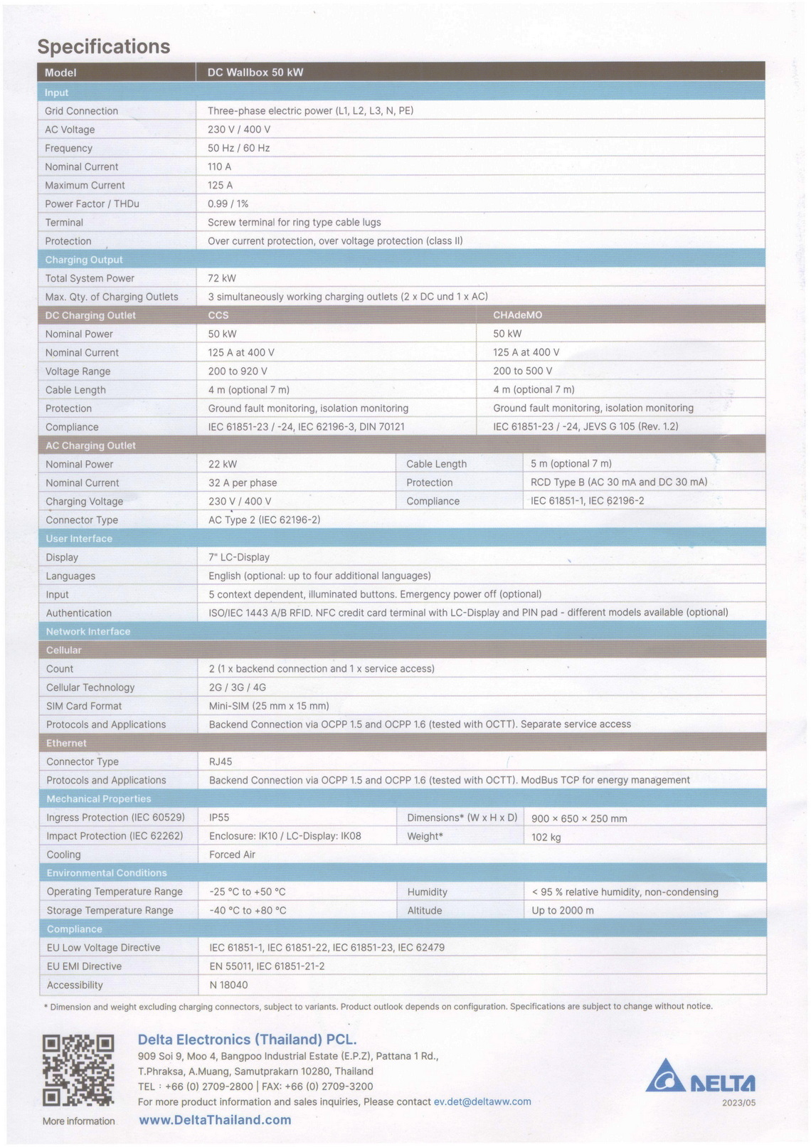 เครื่องชาร์จรถยนต์ไฟฟ้า DELTA เป็นที่รู้จักและคุ้นเคยเป็นอย่างดีของคนไทยที่ใช้บริการชาร์จรถยนต์ไฟฟ้าตามสถานีชาร์จ ทั้งในรูปแบบ AC Charger และ DC Charger มาตั้งแต่เริ่มมีการใช้รถ EV ในประเทศไทย ดังนั้นการนำเสนอเครื่องชาร์จรุ่น DC Wallbox 50 kW และ AC MAX 22 kW ออกสู่ตลาดในช่วงเวลานี้จึงมีความน่าสนใจว่าเครื่องชาร์จทั้ง 2 รุ่น มีจุดเด่นอะไรบ้าง