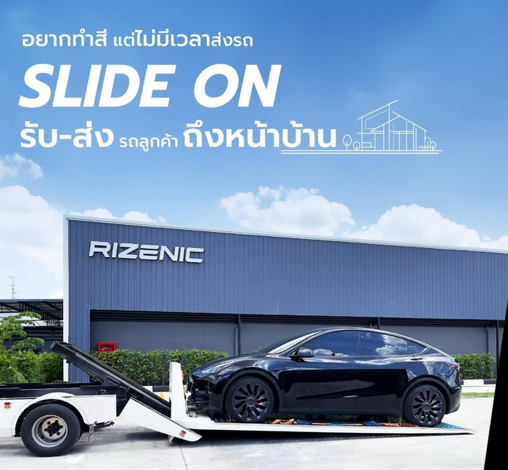 นอกจากนี้ RIZENIC ยังมีบริการ Slide on รับ-ส่งรถลูกค้าถึงบ้าน ปลอดภัย สะดวก ประหยัดเวลา บริการพิเศษสำหรับคนอยากทำสีแต่ไม่มีเวลาส่งรถ