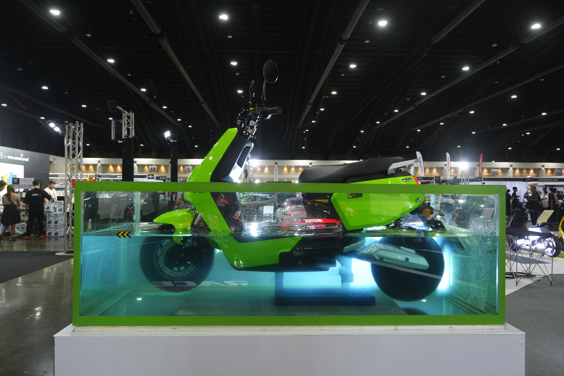 หนึ่งในไฮไลท์สำคัญของงานคือ “การโชว์” ในงานนี้มีโซนการจัดแสดงเทคโนโลยีของ STROM ที่แสดงความก้าวหน้าและนวัตกรรมในการออกแบบรถมอเตอร์ไซค์ไฟฟ้า ที่สามารถใช้งานได้จริงในชีวิตประจำวันโดยเฉพาะในสภาวะน้ำท่วม ซึ่งเราได้นำรถมอเตอร์ไซค์ไฟฟ้าของ STROM คันจริง แบตเตอรี่จริง และอุปกรณ์พร้อมขับขี่จริง ลงแช่ในน้ำความสูงระดับน้ำมากกว่า 45 เซนติเมตร