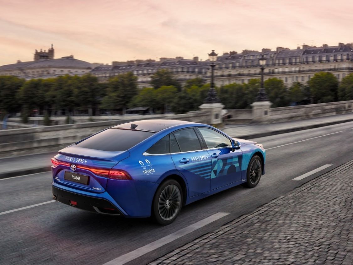 ขณะเดียวกันรถยนต์ไฟฟ้าเซลล์เชื้อเพลิง (FCEV) รุ่น Toyota Mirai โดย Toyota Mirai เป็นตัวอย่างที่สะท้อนถึงความทุ่มเทของโตโยต้าในการผลิตยานพาหนะที่ไม่มีการปล่อยมลพิษ โดยเป็นรถยนต์ซีดานที่ขับเคลื่อนด้วยเซลล์เชื้อเพลิงไฮโดรเจน ออกแบบจากการผสมผสานข้อดีของการขับเคลื่อนด้วยไฟฟ้าเข้ากับความสะดวกสบายและใช้งานง่าย ทั้งยังมีความคล่องตัว และชาร์จไฟได้รวดเร็ว นอกจากนี้ ภายใต้ความร่วมมือกับ Air Liquide ทัพรถยนต์ Toyota Mirai ที่ใช้ระหว่างการแข่งขันที่กรุงปารีส ปี 2024 จะใช้เชื้อเพลิงไฮโดรเจน ที่กำเนิดจากแหล่งพลังงานหมุนเวียนอีกด้วย