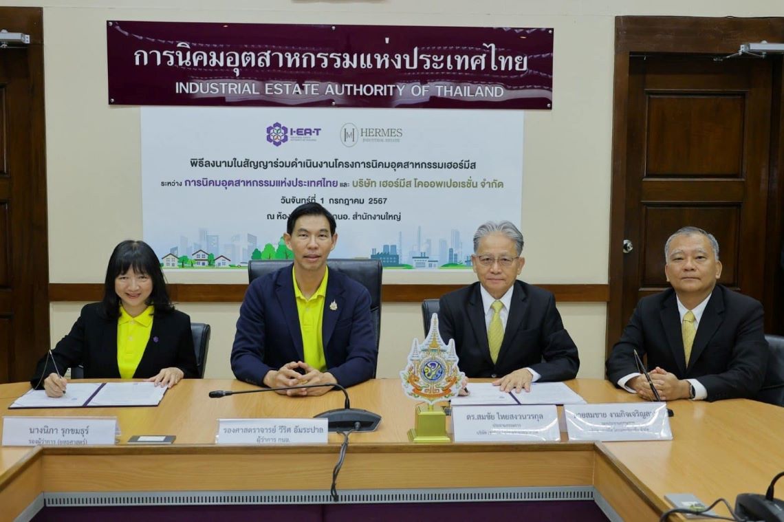 กนอ.ลงนามร่วมกับ เฮอร์มีส โคออพเปอเรชั่น ตั้งนิคมอุตสาหกรรมเฮอร์มีส ขับเคลื่อนนโยบาย Thailand 4.0 เน้นพัฒนากลุ่มอุตสาหกรรมยานยนต์ไฟฟ้าสมัยใหม่ คาดเกิดมูลค่าลงทุนในระบบเศรษฐกิจกว่า 35,320 ล้าน สร้างงานกว่า 8,830 ตำแหน่ง